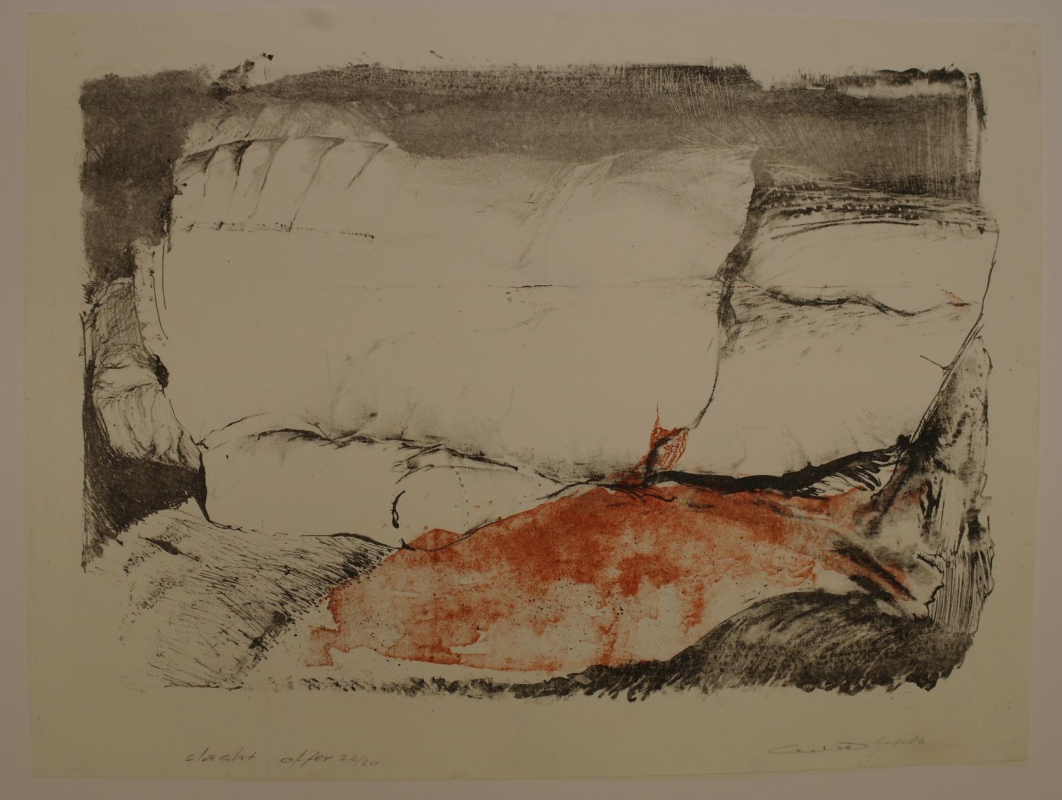 Slacht-offer – 1984, kleurenlitho/papier (oplage 30), 375 x 525 mm, geannoteerd en genummerd in potlood l.o. onder plaat: slacht offer 24/30, gesigneerd en gedateerd in potlood r.o. onder plaat: Wied 6-1-84