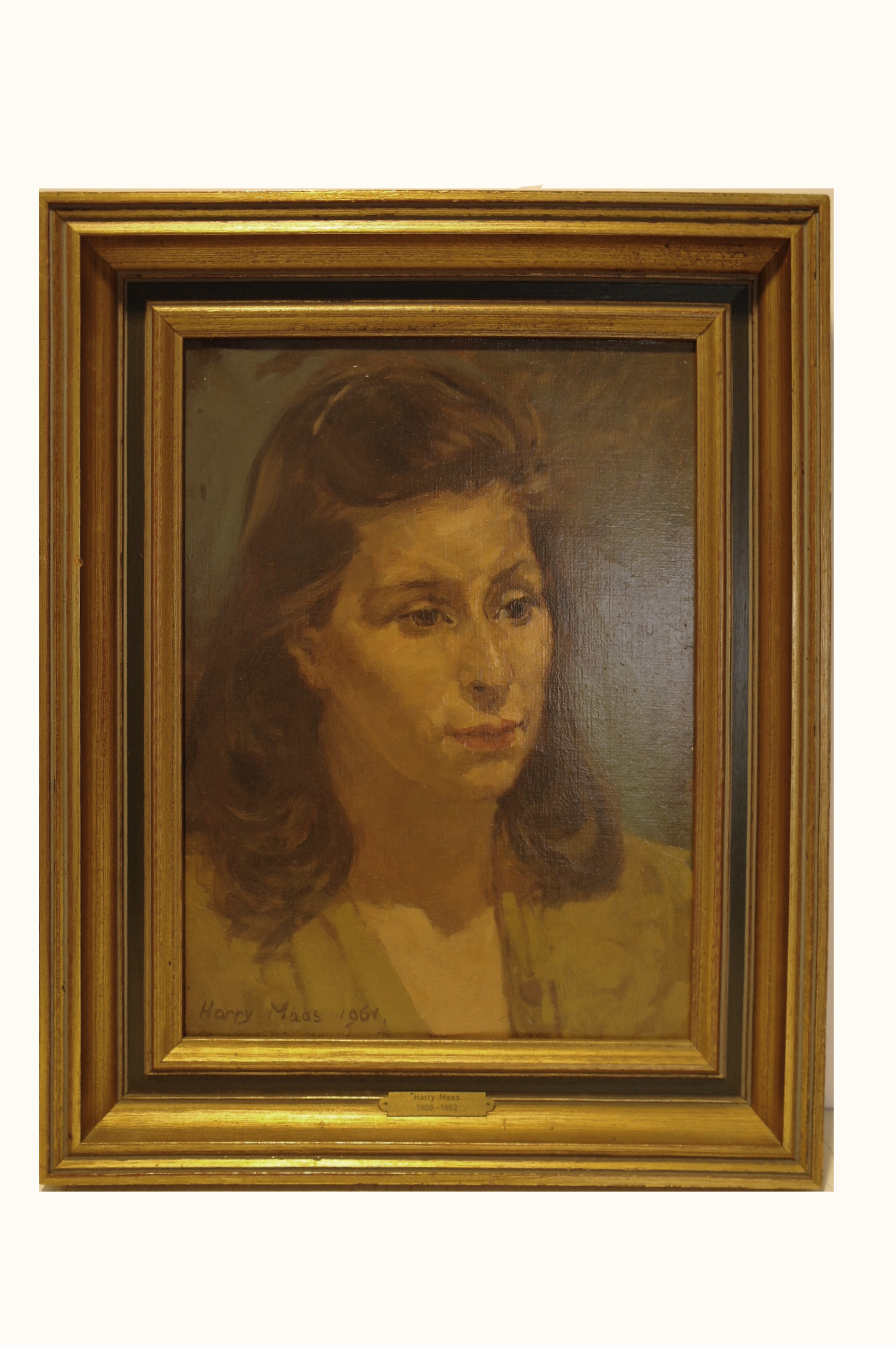 Portret van Netty (Antoinette Cecilia Catharina) Michels (1919 - 1995) – 1961, olieverf/doek, 40 x 30 cm, gesigneerd en gedateerd l.o.: Harry Maas 1961