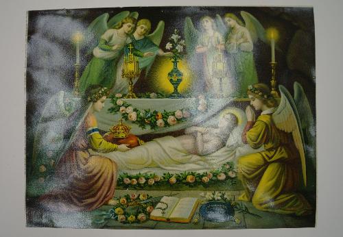 Gestorven Maria met twee knielende engelen (of het Heilig Graf van Maria), vervaardiger/druk: Leiber (tek.), techniek: Polychromolithografie, gesigneerd in voorstelling l.o.: Leiber . Gestorven Maria met twee knielende engelen (of het Heilig Graf van Maria), vervaardiger/druk: Leiber (tek.), techniek: kleurenlitho/chromolithografie, 318 x 417 mm, gesigneerd in voorstelling l.o.: Leiber . Opm: Gestorven Maria met twee knielende engelen ...