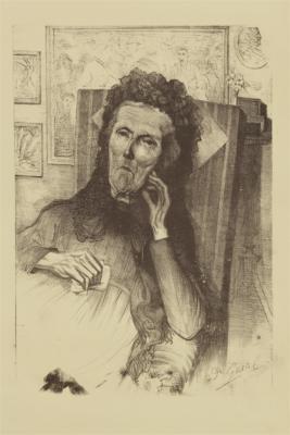 Moeder Gestel in stoel - omstreeks 1930, litho/papier, 330 x 230 mm, gesigneerd in plaat r.o.: Dn Gestel Portret van Jannetje Gestel-Kwaadland (Ouddorp 1823 - 1925 Eindhoven), de moeder van de kunstenaar, gezeten in een stoel. De schenker is een begrafenisondernemer bij wiens ouders Dimmen Gestel in huis heeft gewoond.