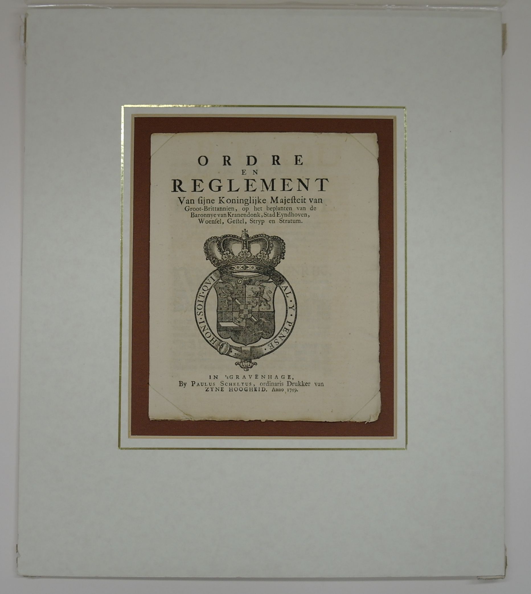 Ordre en Reglement Van sijne Koninglijke Majesteit van Groot-Brittannien, op het beplanten van de Baronnye van Kranendonk, Stad Eyndhoven, Woensel, Gestel, Stryp en Stratum