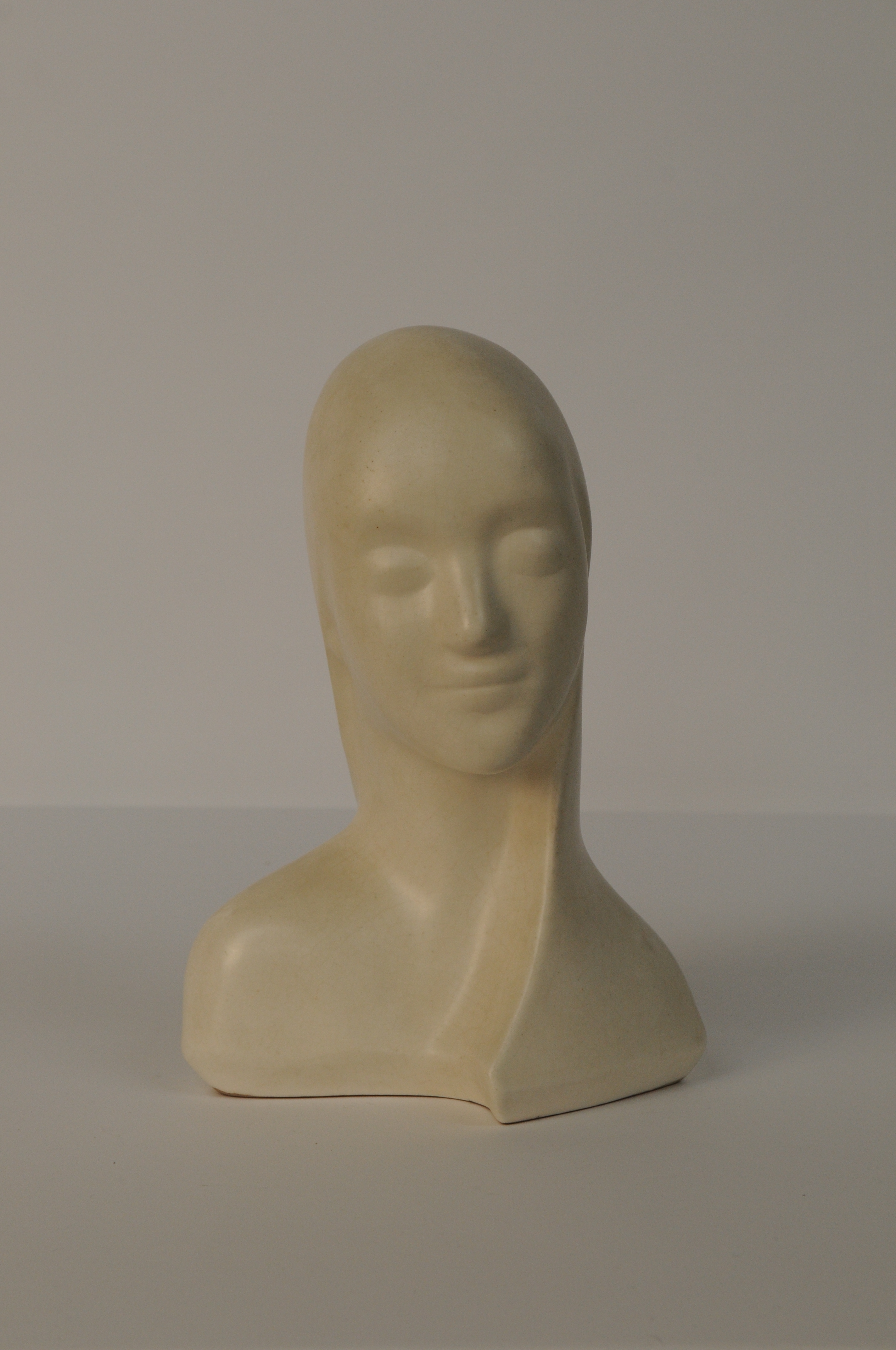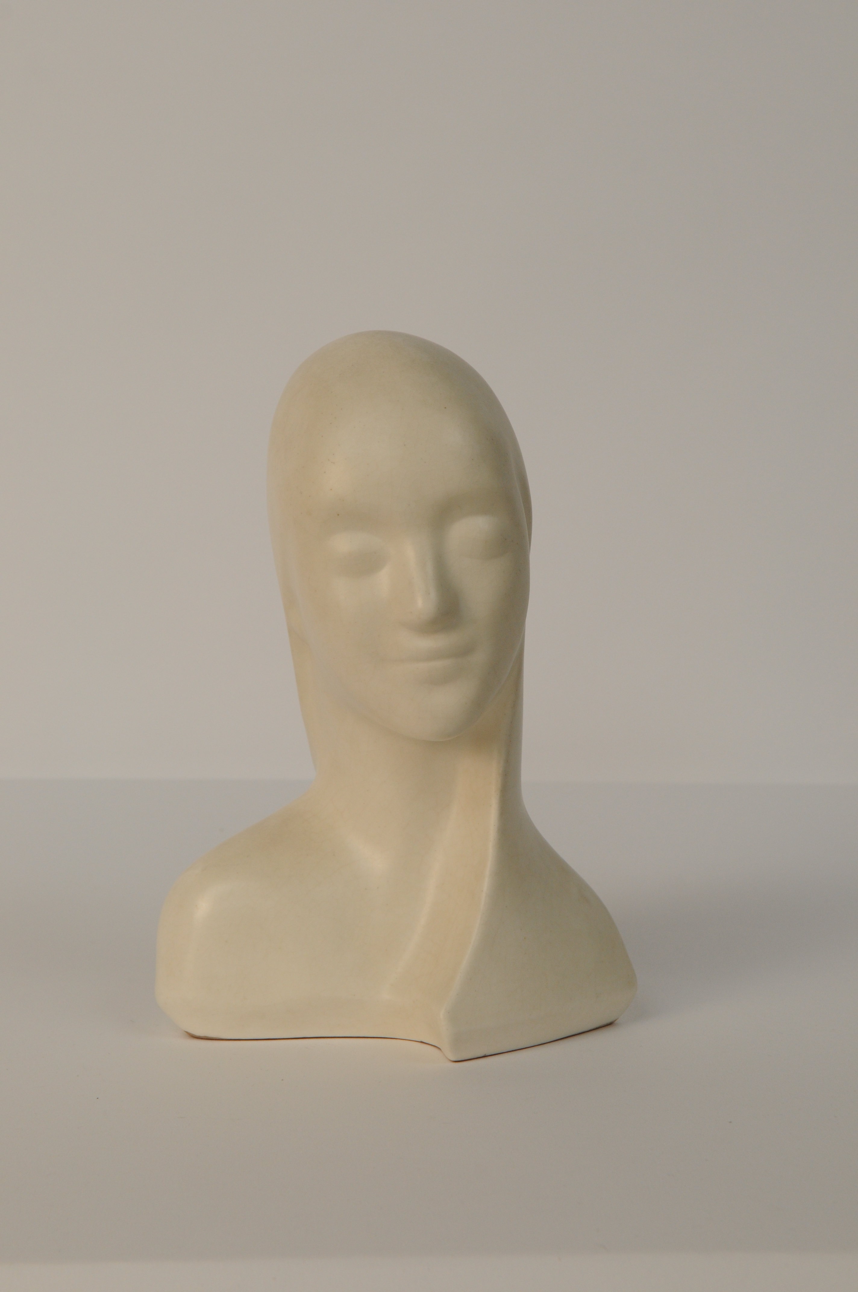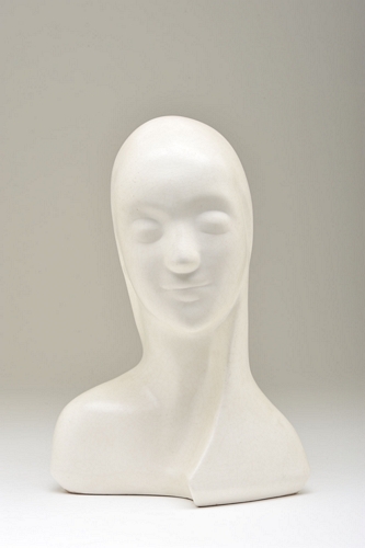 Vrouwenhoofd - jaren 1930, wit geglazuurd aardewerk / Koninklijke Plateelbakkerij Zuid-Holland Gouda, 26,5 x 18,5 x 13,5 cm