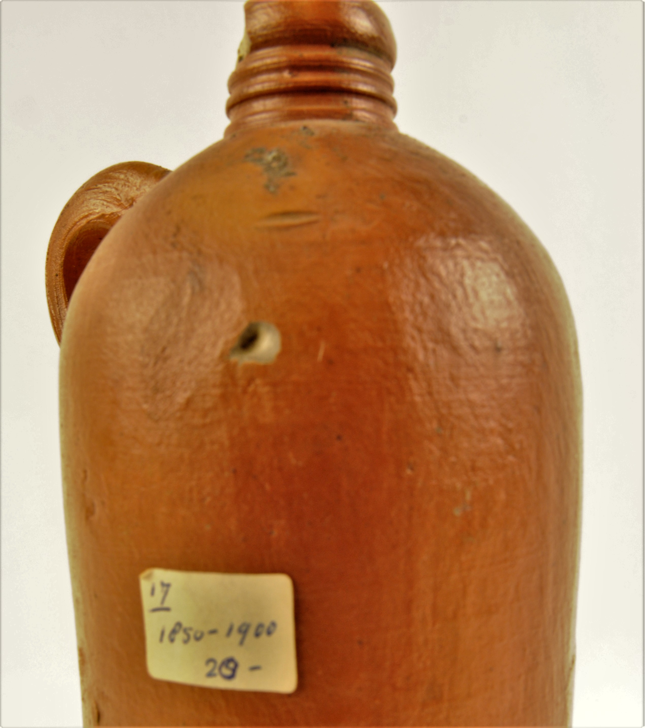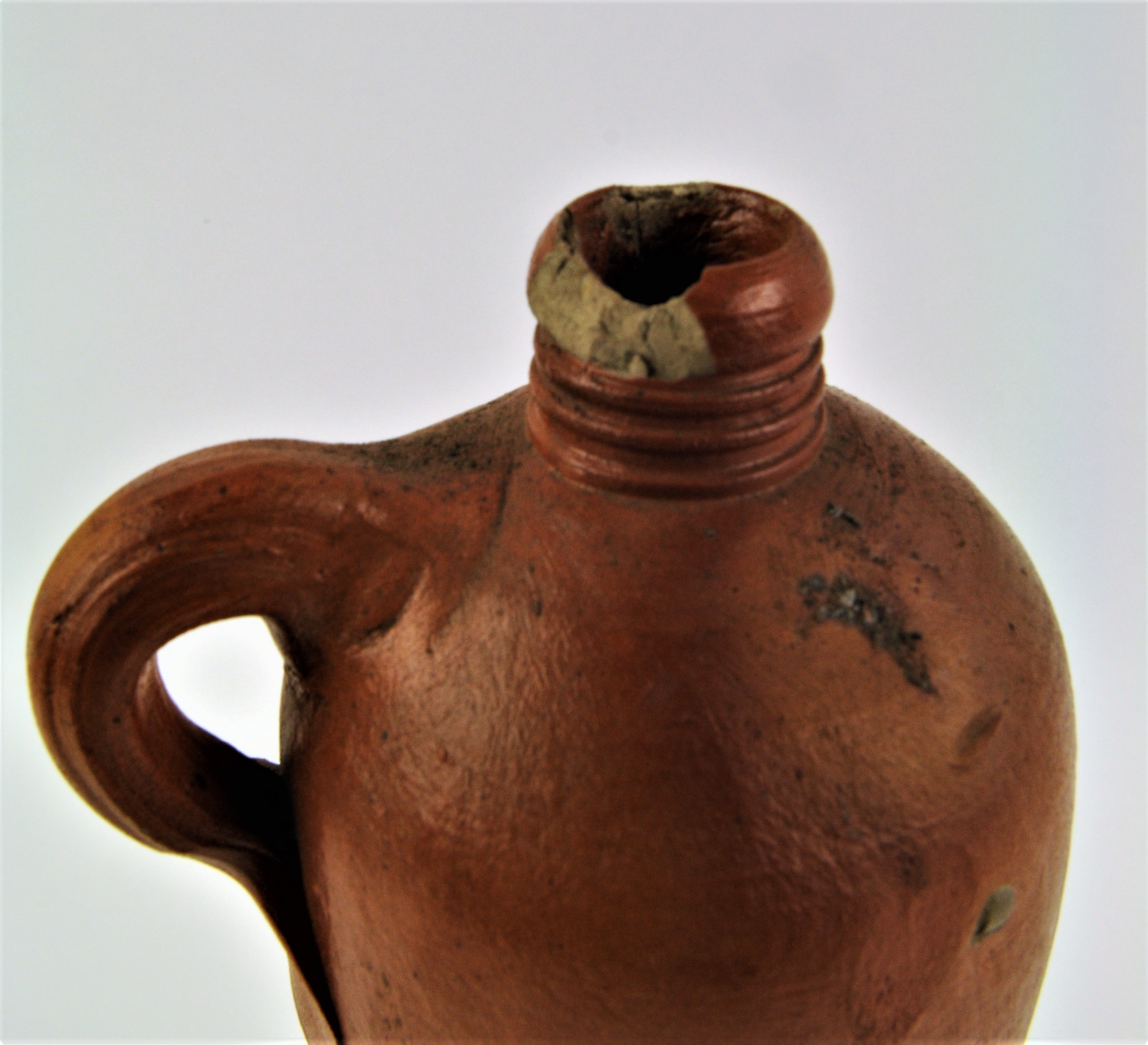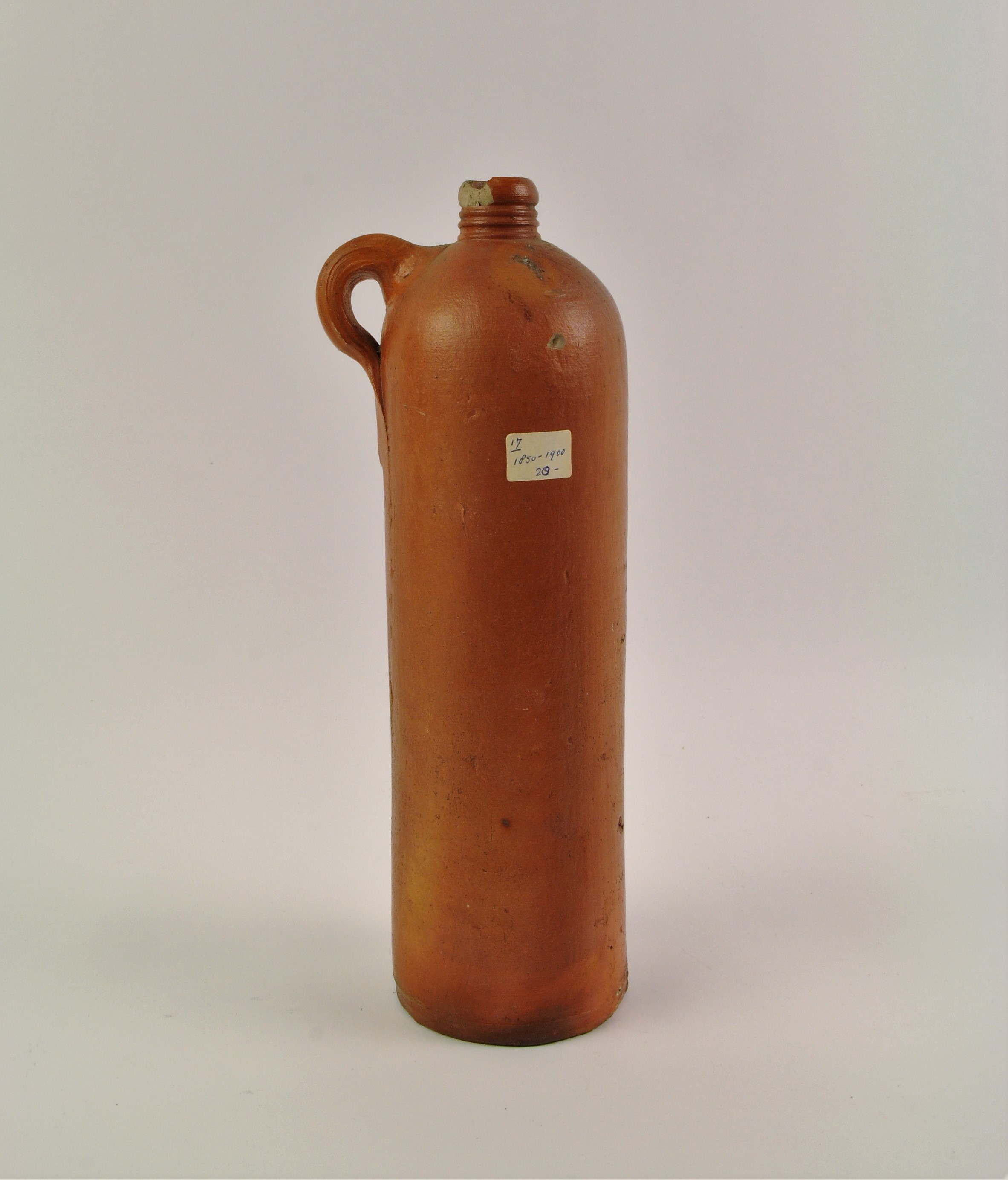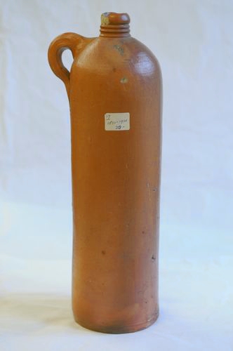 Kruikje - 20e eeuw, aardewerk/geglazuurd, 30 x 8,5 cm, kruikje met een oortje en een schroefsluiting, bestemd voor gedistilleerd of brandewijn