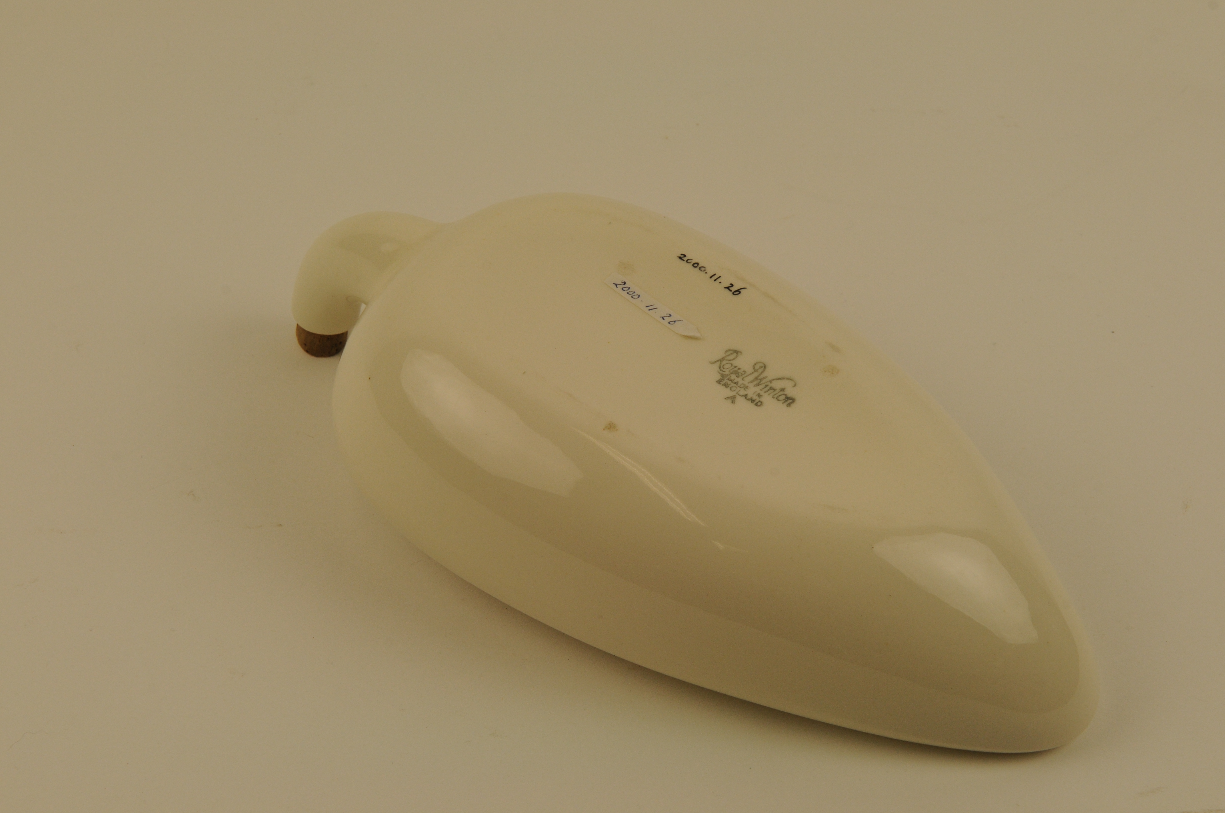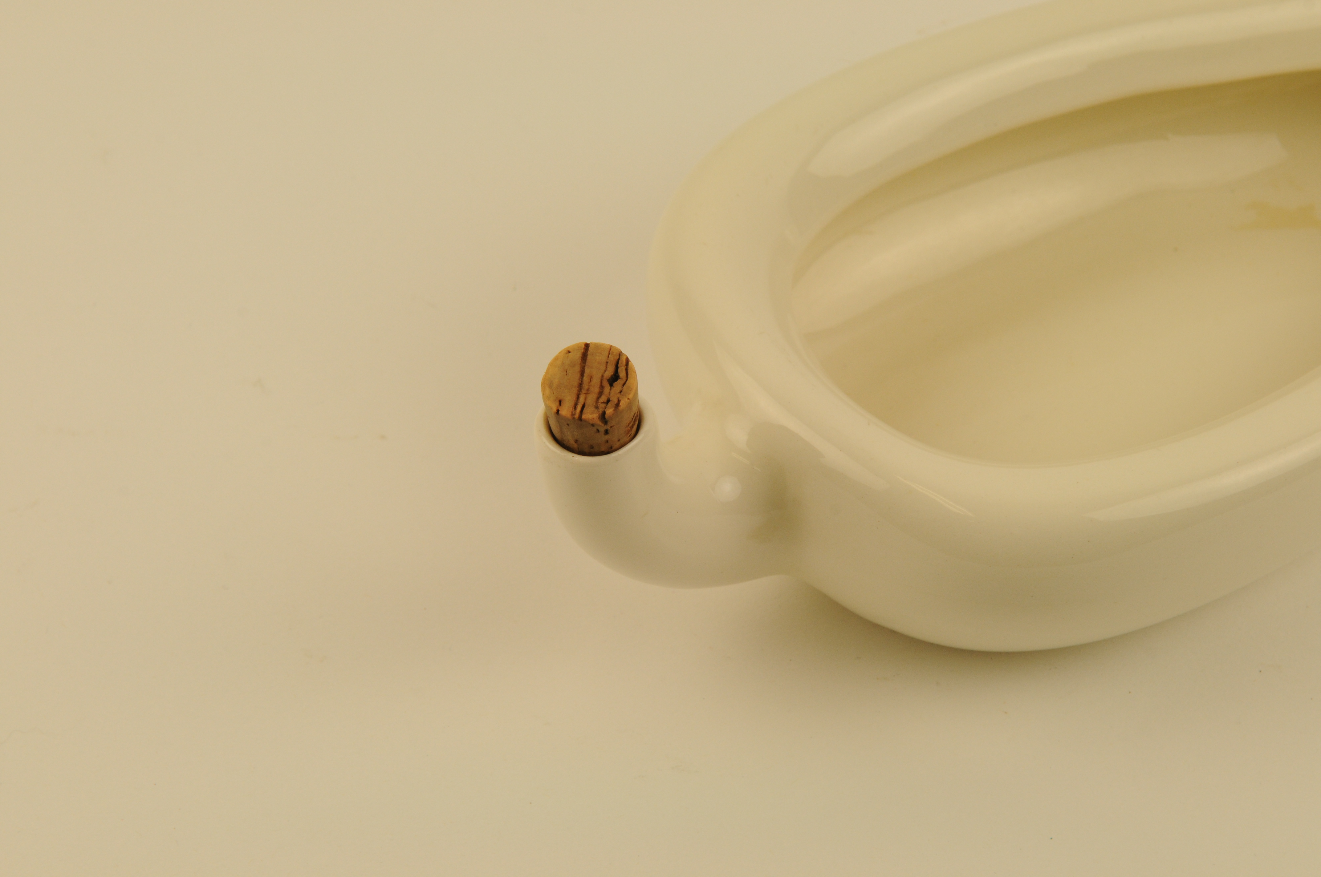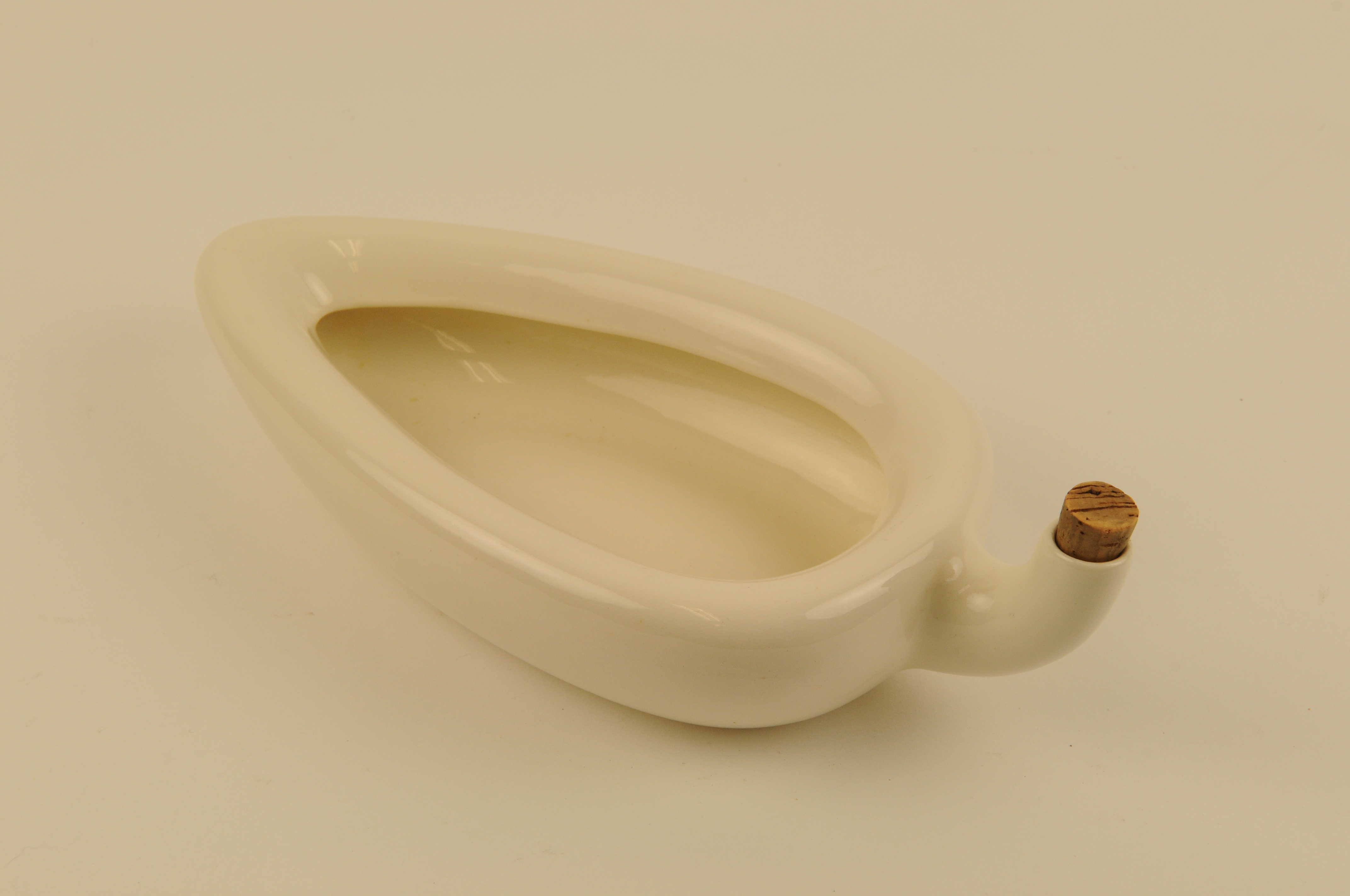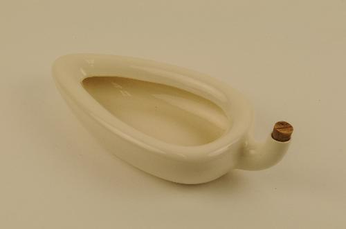 Wit geglazuurd aardewerken vrouwenurinaal met gebogen tuit. Voorzien van merkstempel: 'Royal Winton Made in England A'