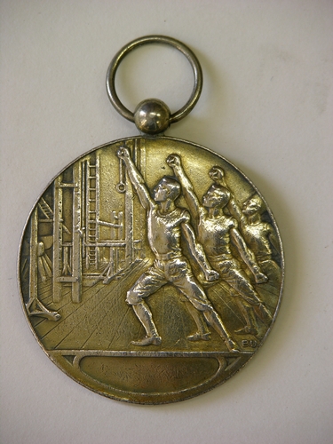 Ronde prijsmedaille/draagpenning met recto: reliëfafbeelding van drie jongemannen in sport/gymzaal in nagenoeg identieke oefenhouding. R.o.: 'B.U' (Begeer Utrecht). Verso: inschrift 'Heerlensch Sportcomité 14 juli 1918 1e prijs Marschwedstrijd Heeren'. Langs rand lauwertakken van eikenblad en laurier. Opschrift: 'B.U.' Met doorboord knopje/draagringetje