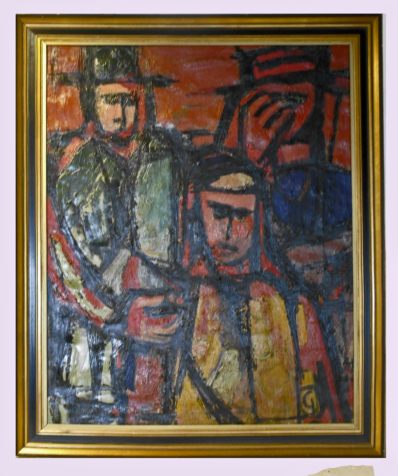 Slechte tijding - omstreeks 1956, olieverf/doek, 110 x 90 cm, gemonogrammeerd r.o.: G (in schild)