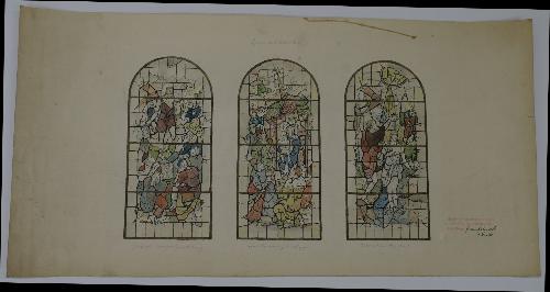 Ontwerpen voor drie glas-in-loodramen met Prediking van Johannes de Doper, Aanbidding der wijzen, Doopsel van Christus, voormalige Sint-Antonius van Paduakerk Eindhoven-Strijp (nu Museum Kempenland Eindhoven)