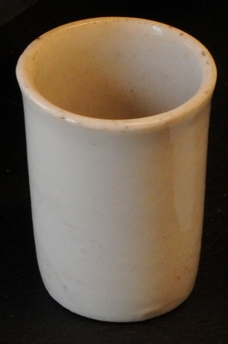 Inktpotje van geglazuurd steengoed, onderdeel van set van 27 inktpotjes in een houten houder op pootjes