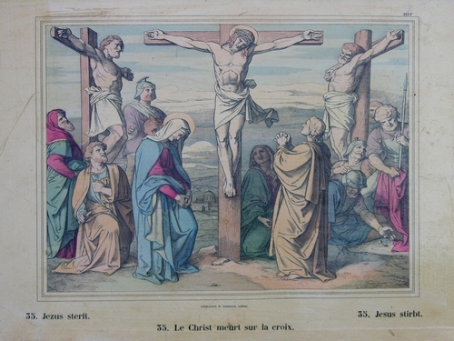 gesigneerd r.o.: Heinemann lith. titel-onderschrift behalve in het nederlands, in het frans en duits r.b. buiten omkadering voorstelling het reeksnummer: XXXV