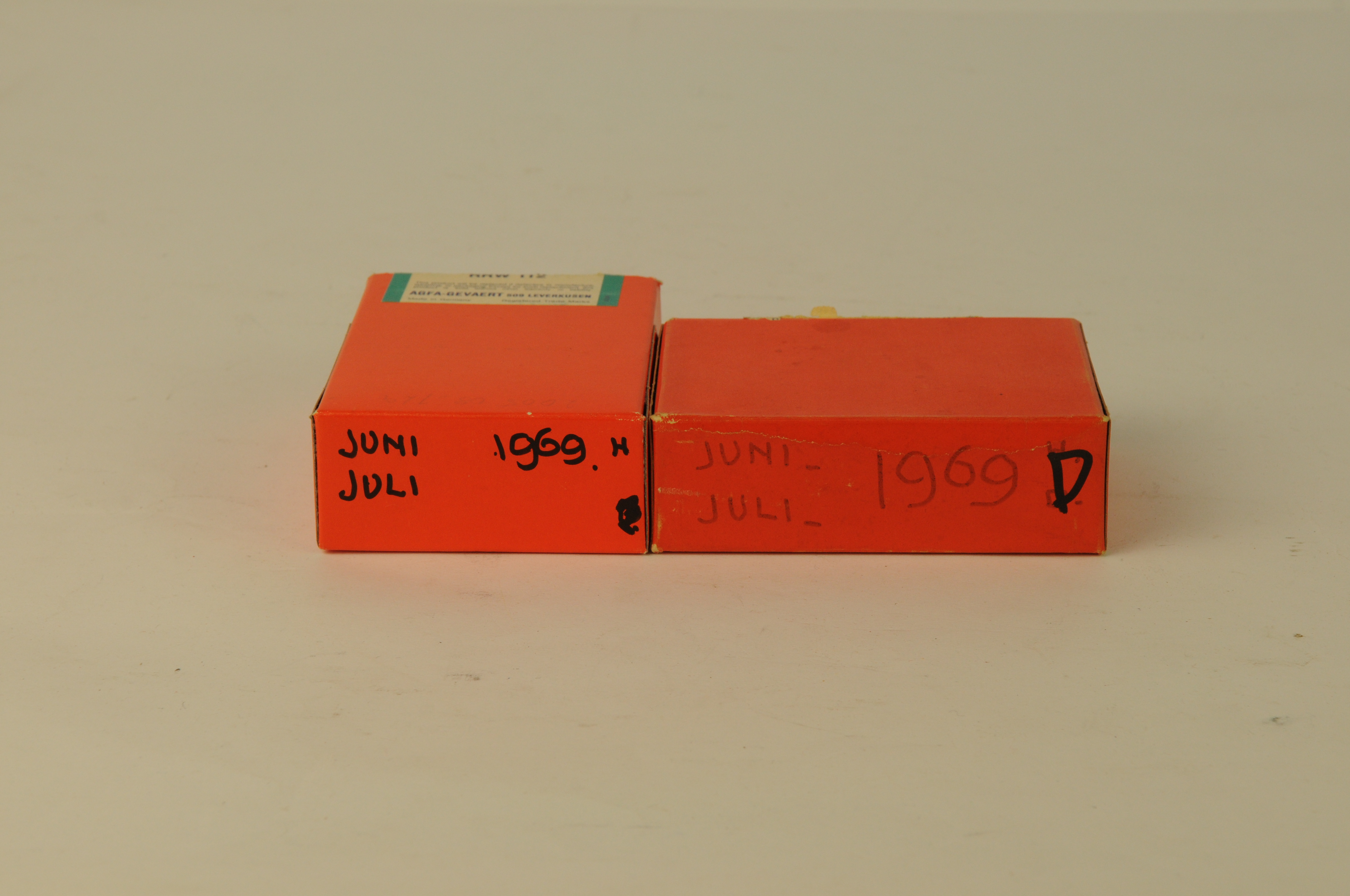 Blik A met diverse negatieven in doosjes over de periode januari 1967 tm december 1970 (vnl. portretten)