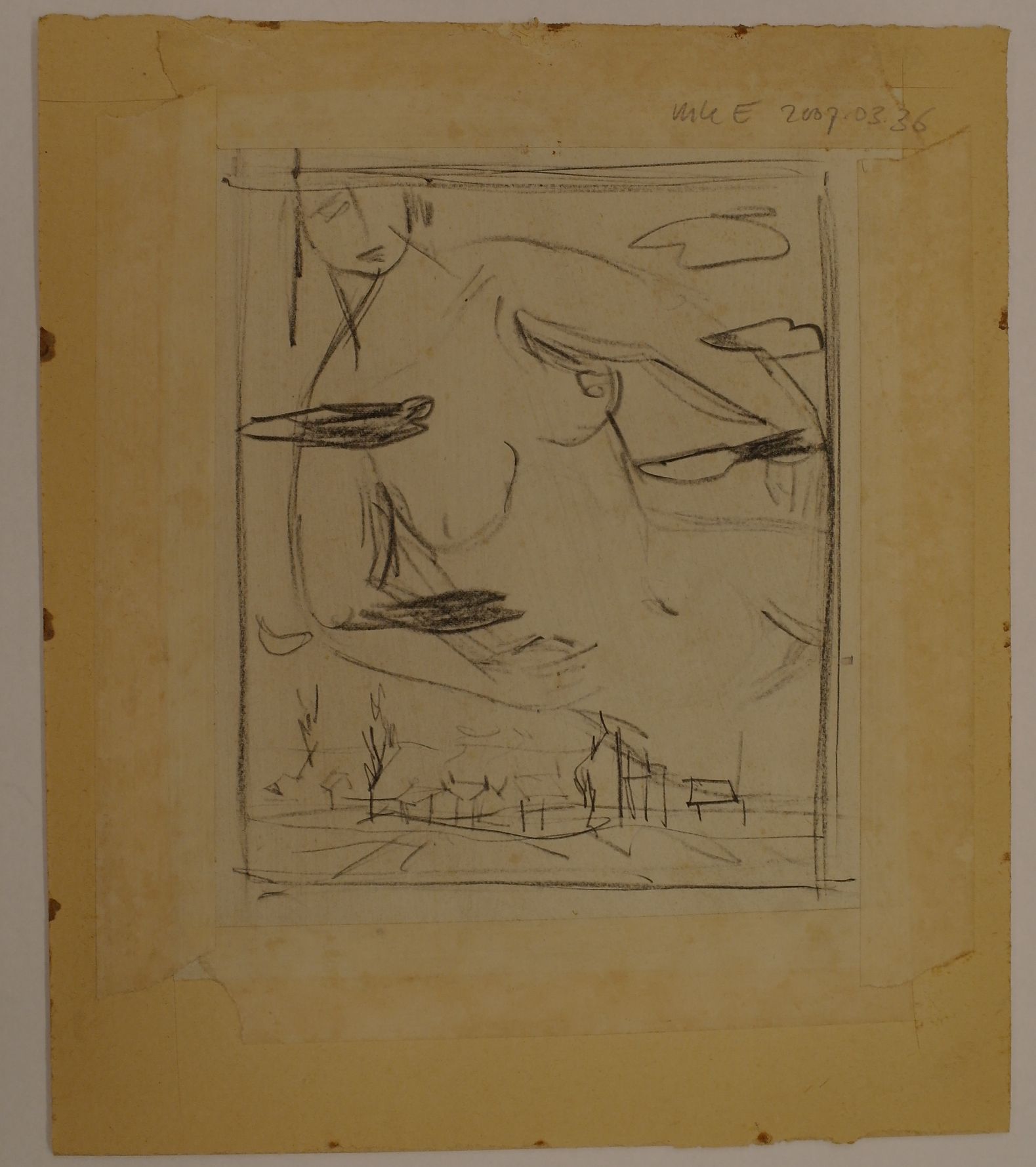 Op de keerzijde/rugzijde van de voorstelling bevindt zich een ongesigneerde schets van de monotype in potlood