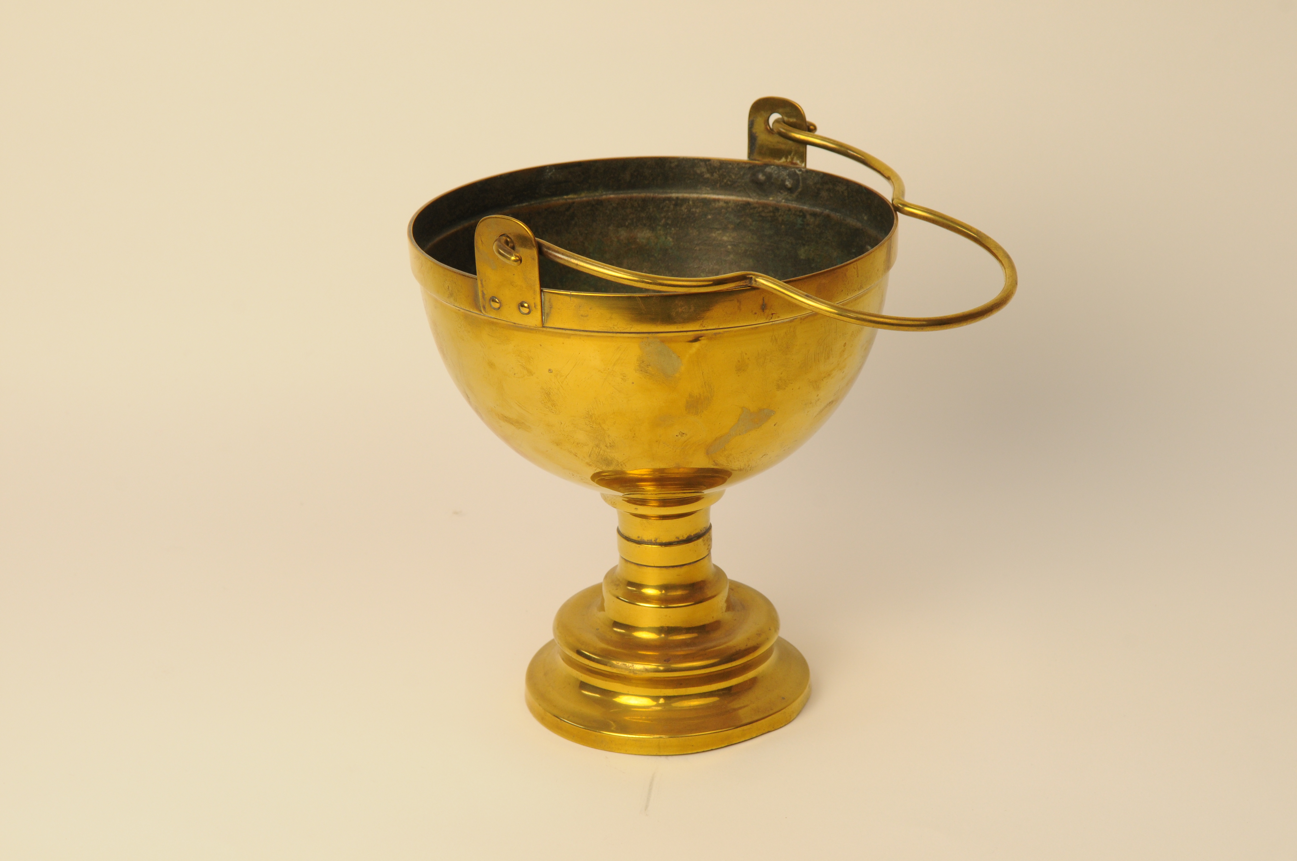 Geelkoperen wijwatervat/emmer met zwenkbaar beugelhandvat