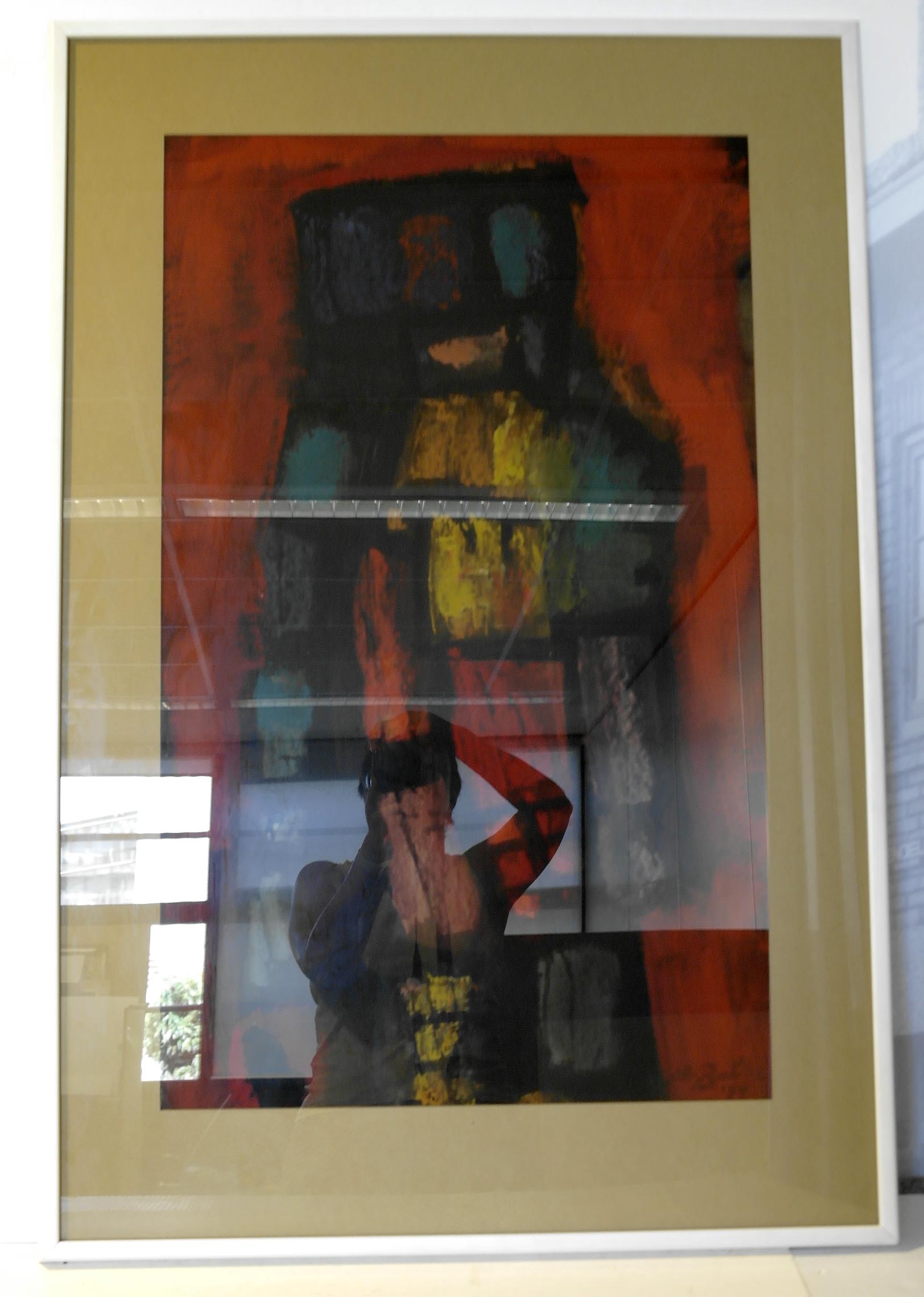 Zonder titel (abstract) – 1974, gouache/papier, 780 x 480 mm, gesigneerd en gedateerd r.o.: Alb. René ’74 De drie gouaches zijn door Dhr. M. van Mil verworven in ruil voor een bed. Dhr. van Mil had namelijk een beddenspeciaalzaak aan de Hoogstraat in het stadsdeel Gestel