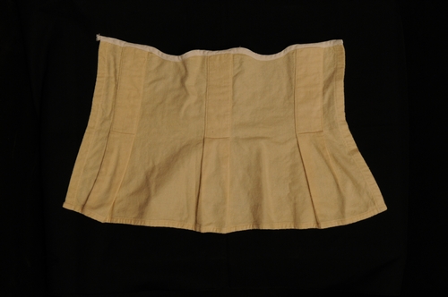 Borstrokwikkels of luieromslag ?, materiaal: flanel (wol/katoen), keur: ecru, lengte 31,5 cm., breedte 76 cm., drie doorgestikte stolpplooien tot de helft van de lengte, bovenkant afgebiesd met keperband, rondom omgenaaid
