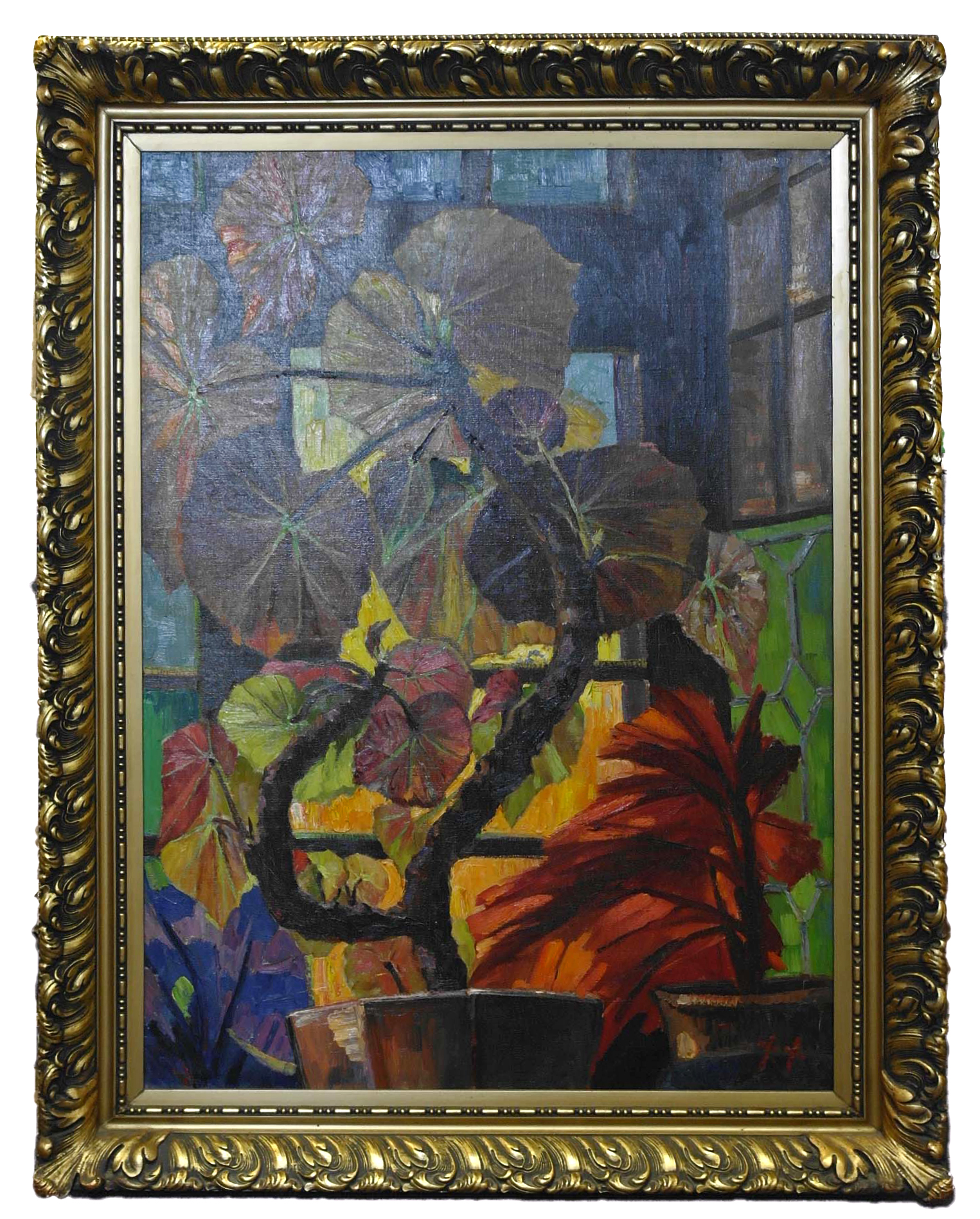 Stilleven met begonia's - omstreeks 1928, olieverf/doek, 115 x 85 cm, gesigneerd r.o.: X X