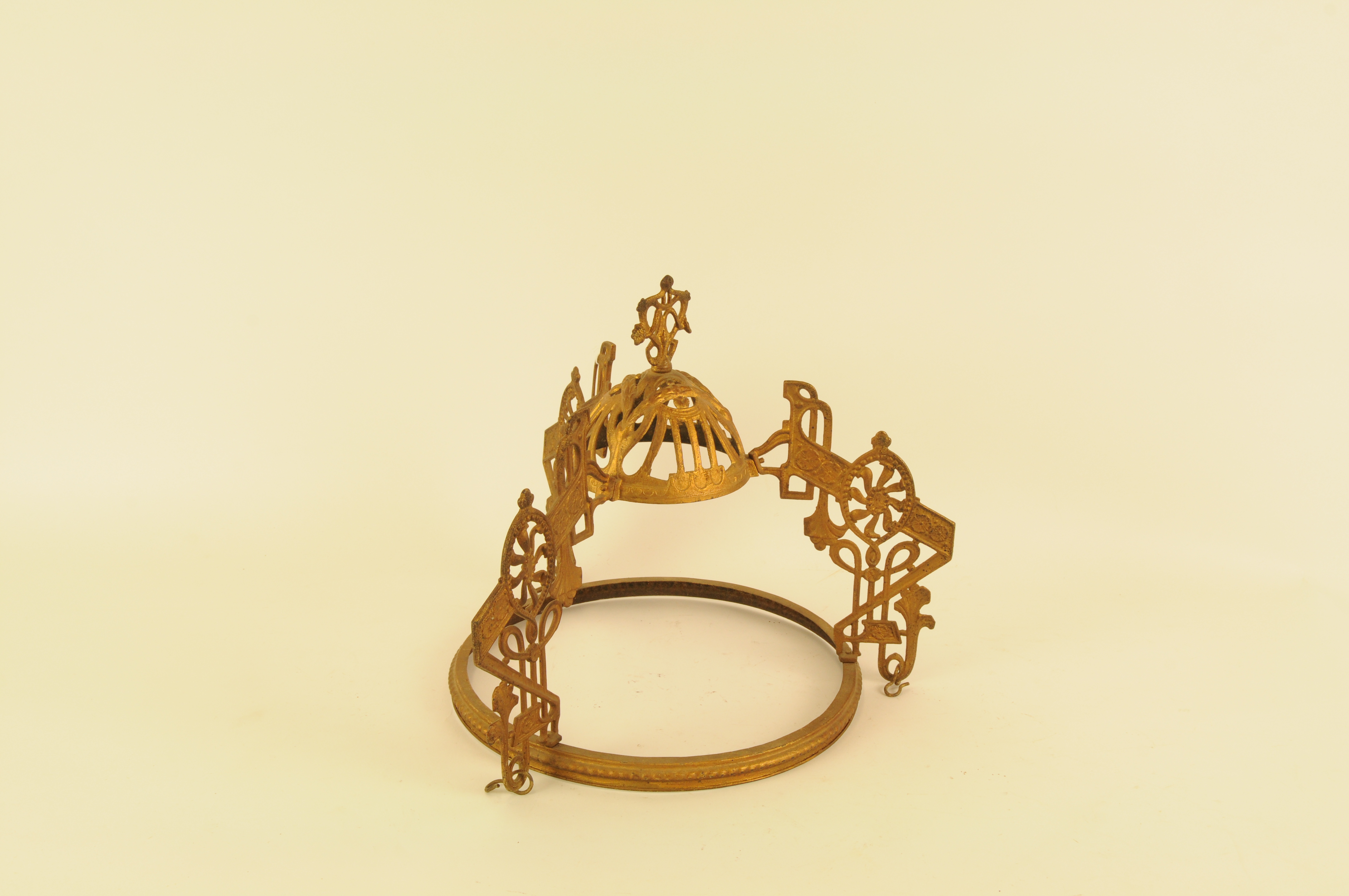 Gietijzeren 'frame' van hang-petroleumlamp met kettingen