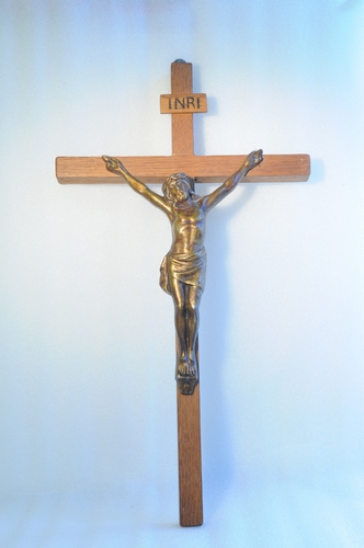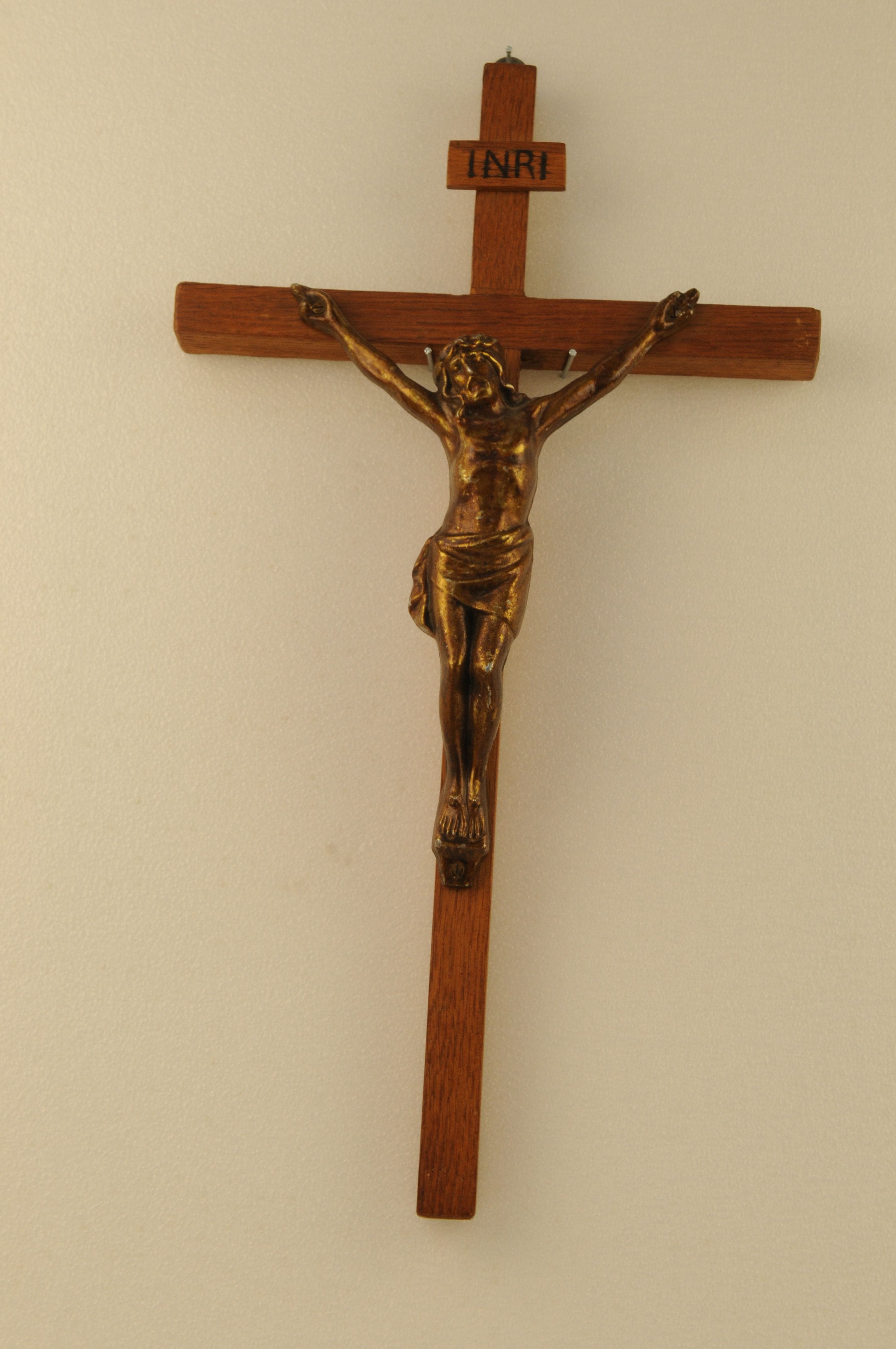 Hangkruis met houten INRI-schildje (beschilderd).