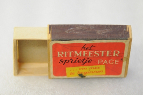 Luciferdoosje met reclameopdruk 'Ritmeester Sprietje' - 2e helft van de 20e eeuw, materiaal: karton en papier, afmetingen: 1,4 x 3,5 x 5 cm