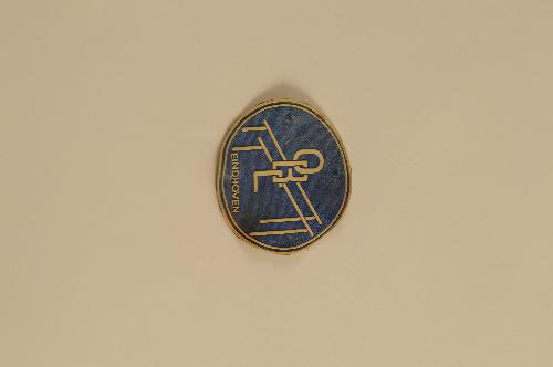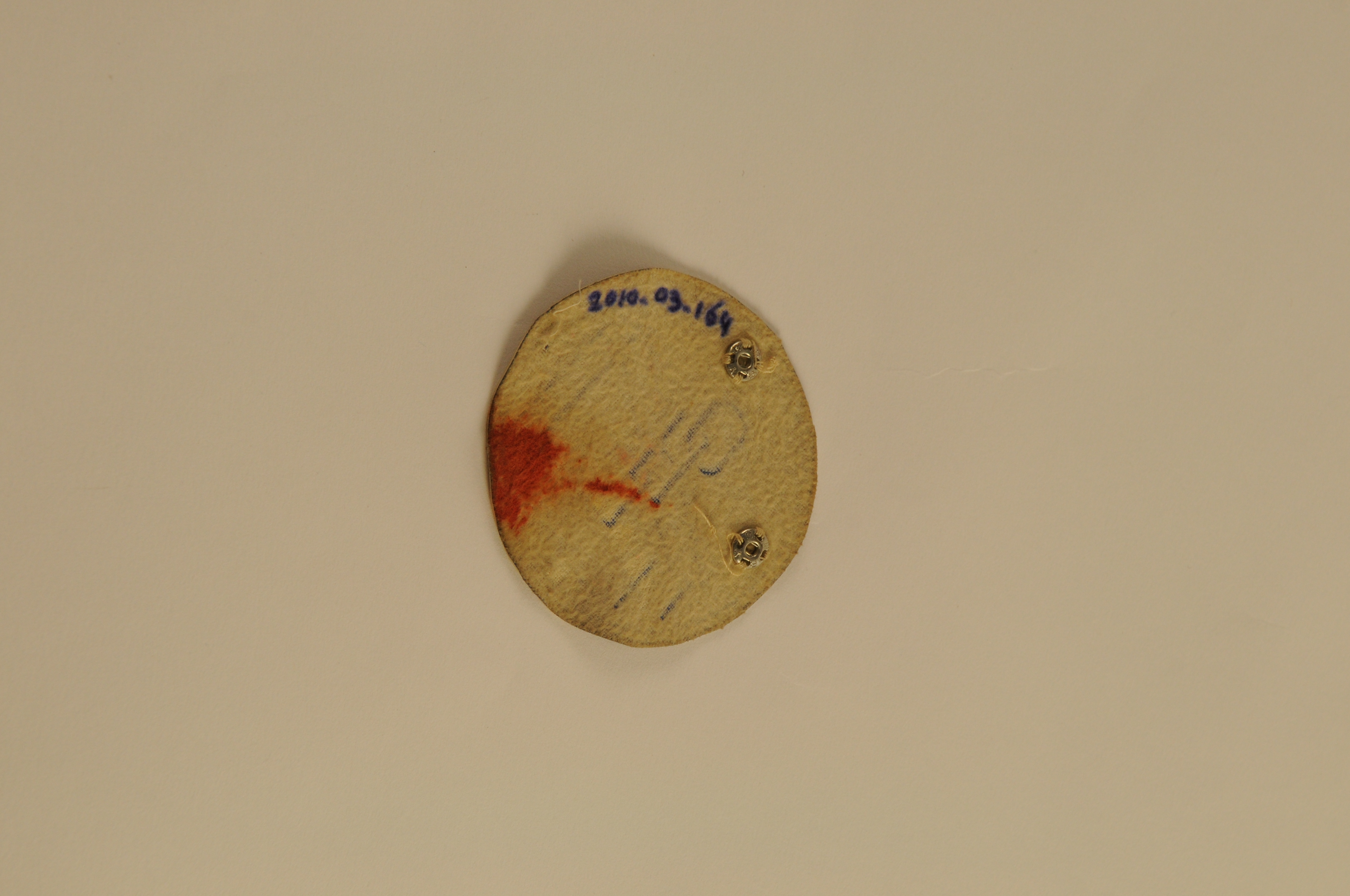 Embleem van turnvereniging O.B.C. – z.j. opdruk-figuur en letters in een soort rubber, opgelegde tekst en figuur-tekening: een turntoestel met (ineen) de letters ‘OBC EINDHOVEN’ Embleem van turnvereniging O.B.C. – z.j., materiaal: vilt, linnen en rubber, diameter 7,8 cm, basis vilt waaroverheen linnen, opdruk-figuur en letters in een soort rubber, opgelegde tekst en figuur-tekening: een turntoestel ...