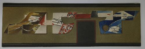 Mozaïekreliëf Het Geldschip (ontwerp 2x), kantine gemeentehuis Schijndel (vroeger hal Boerenleenbank) - 1967