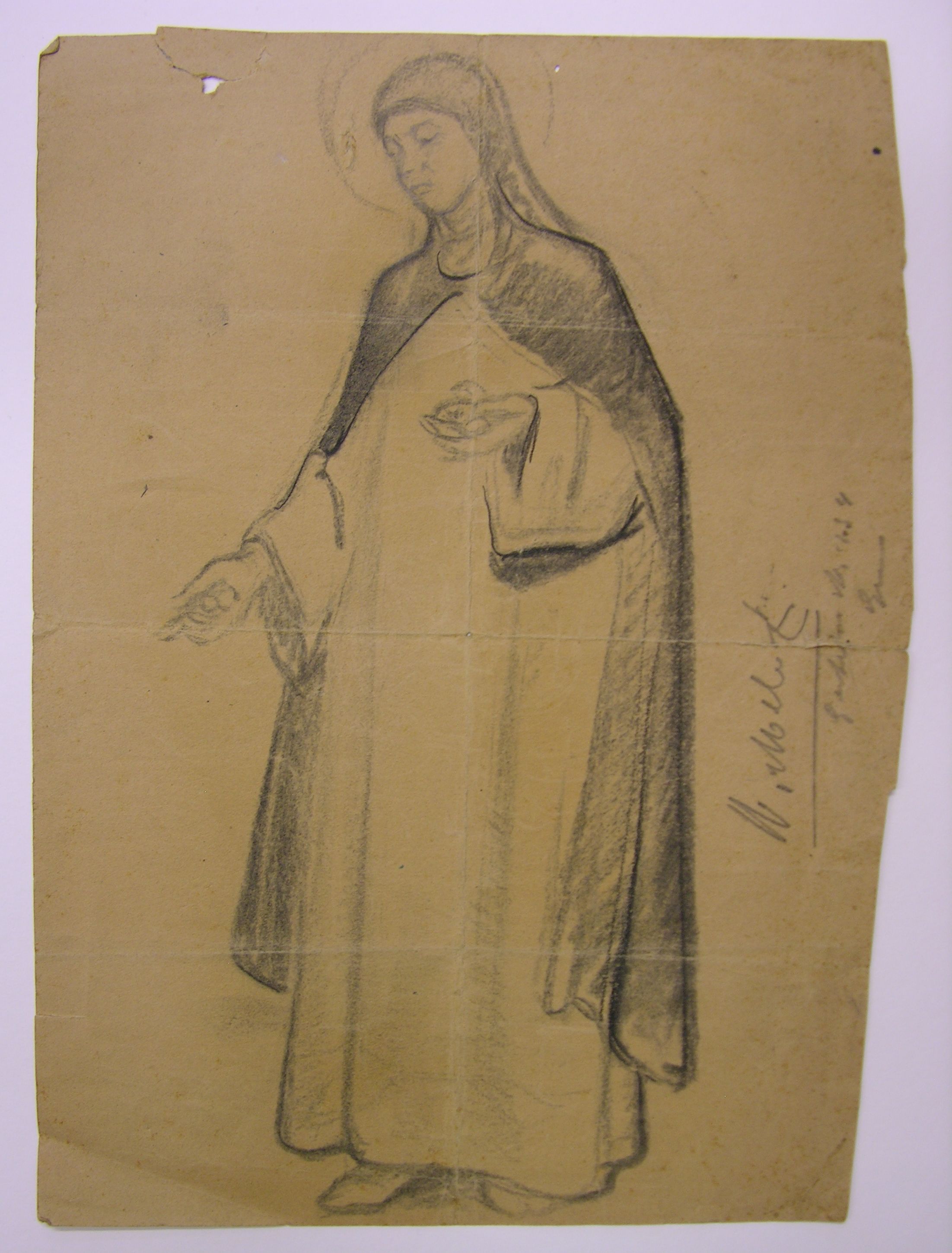 H. Theresia / a.z. console - z.j., potlood/papier, 320 x 233 mm, gesigneerd r.m.: H. v Melick Gestelsestr. 134 Ehv. Gesigneerd r.m.: H. v Melick Gestelsestr. 134 Ehv. Hubert van Melick was, na beëindiging van atelier Custers in dienst van Matthijs Coolen