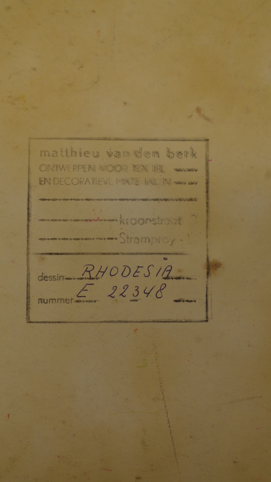 Textiel-ontwerp Rhodesia E 22348, gouache en aquarel/papier, 685 x 500 mm
