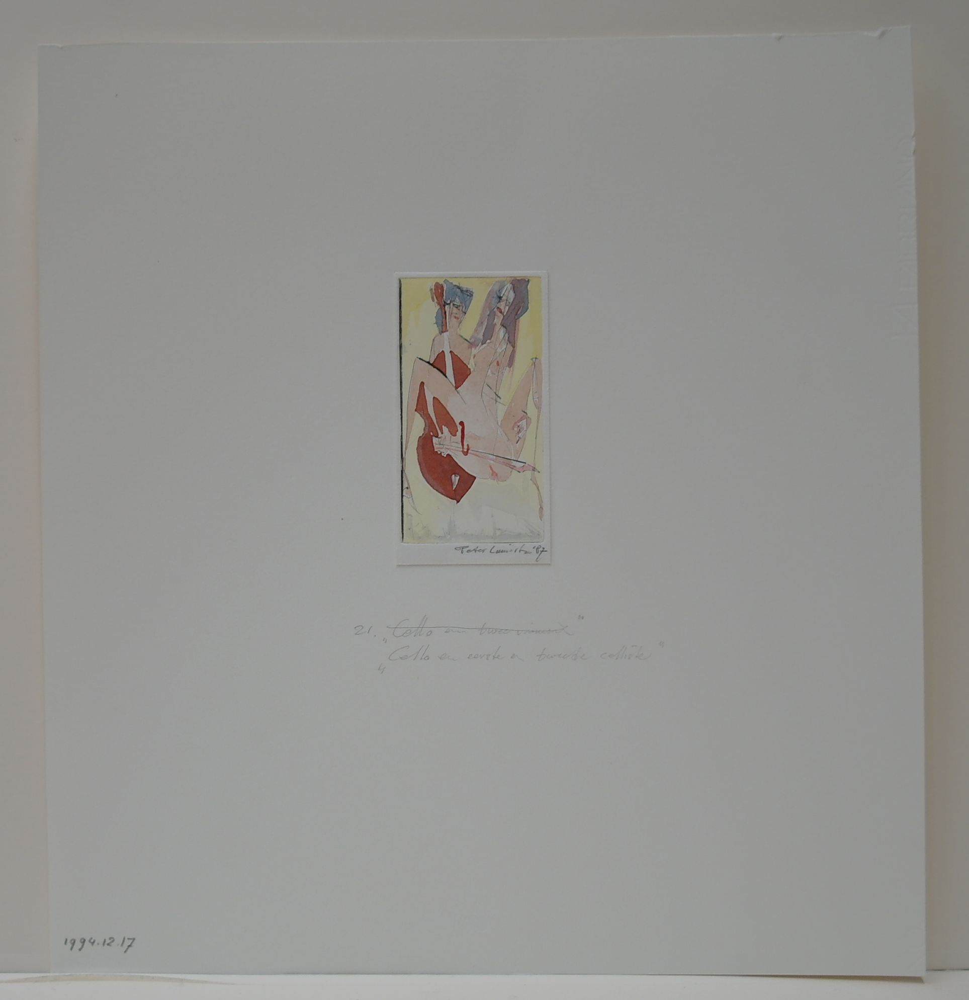 gesigneerd en gedateerd r.o.pl.: Peter Linnartz '87 Tijdens tentoonstelling: expositienummer: 1