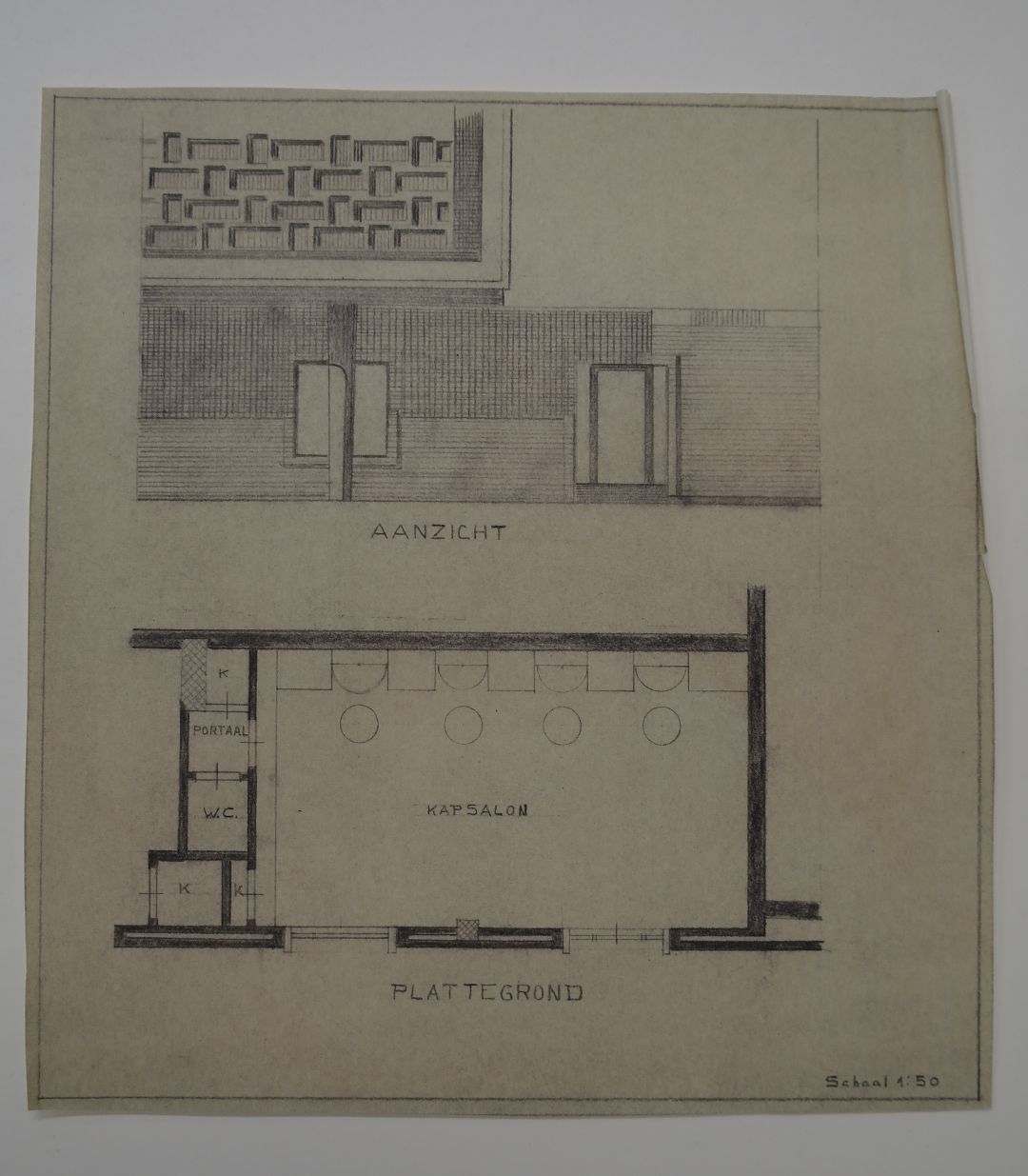 Plattegrond en aanzicht kapsalon