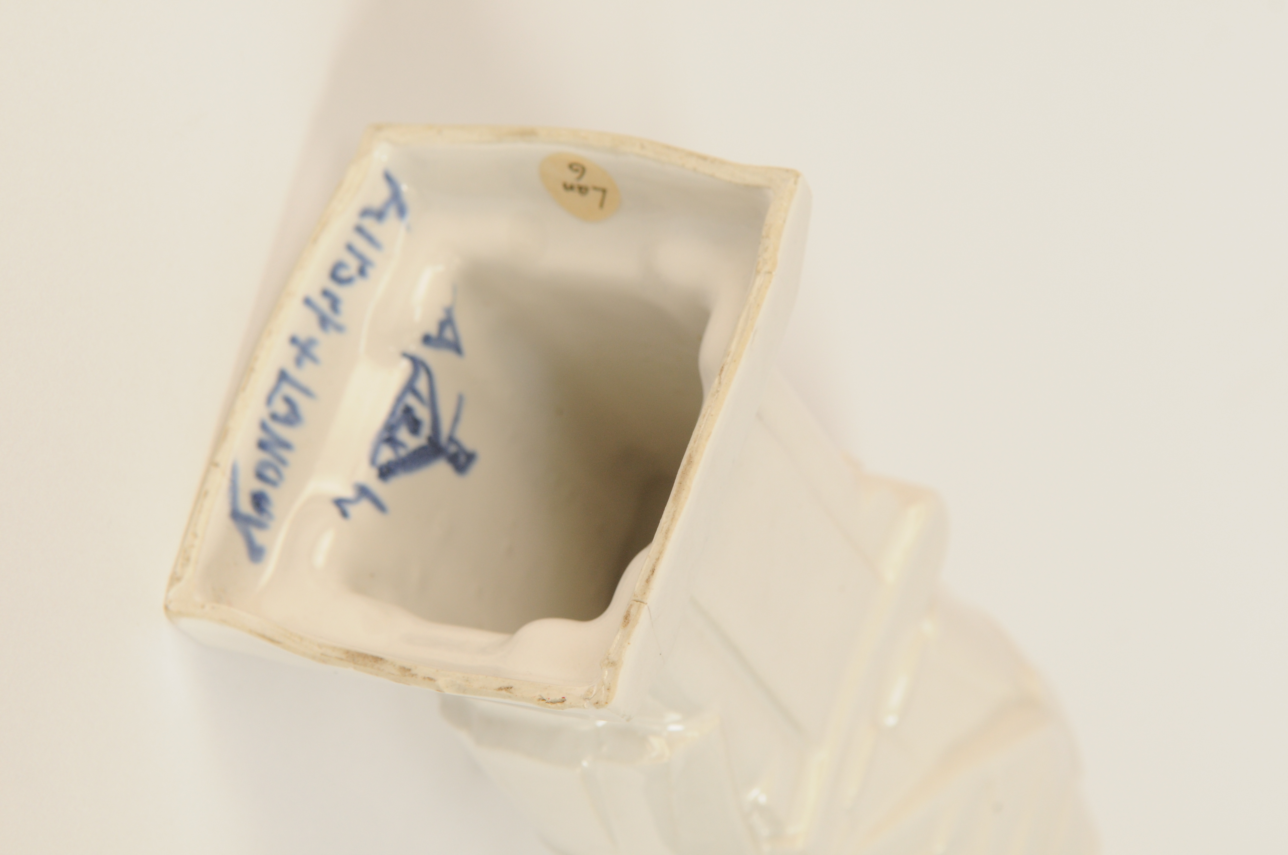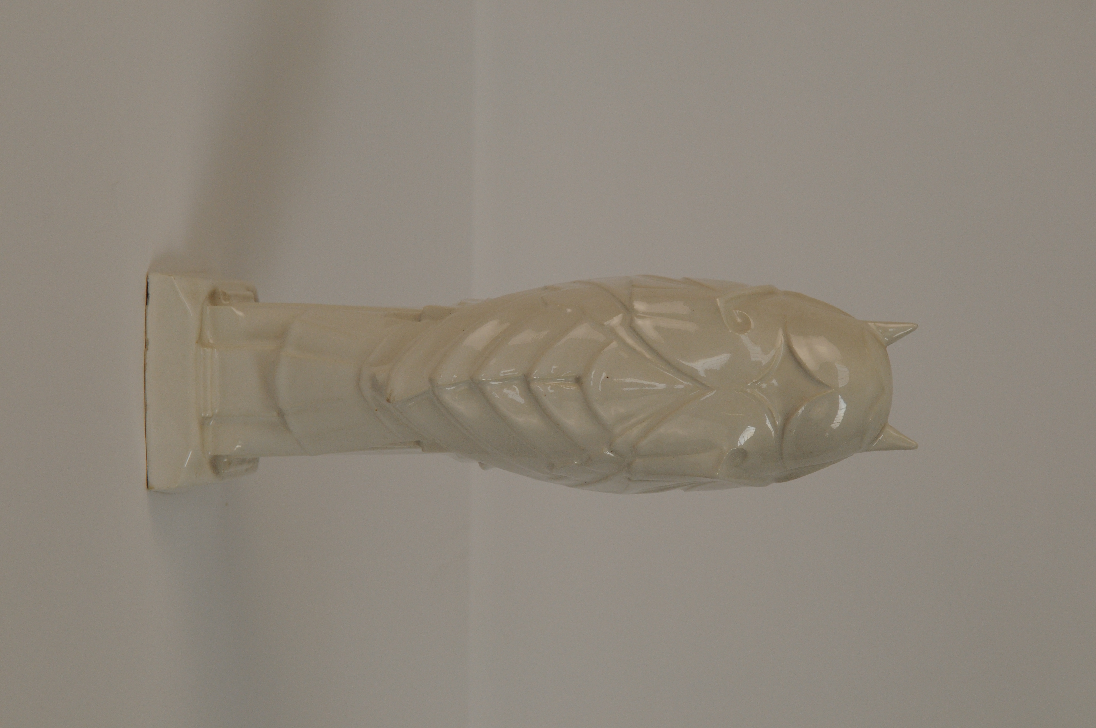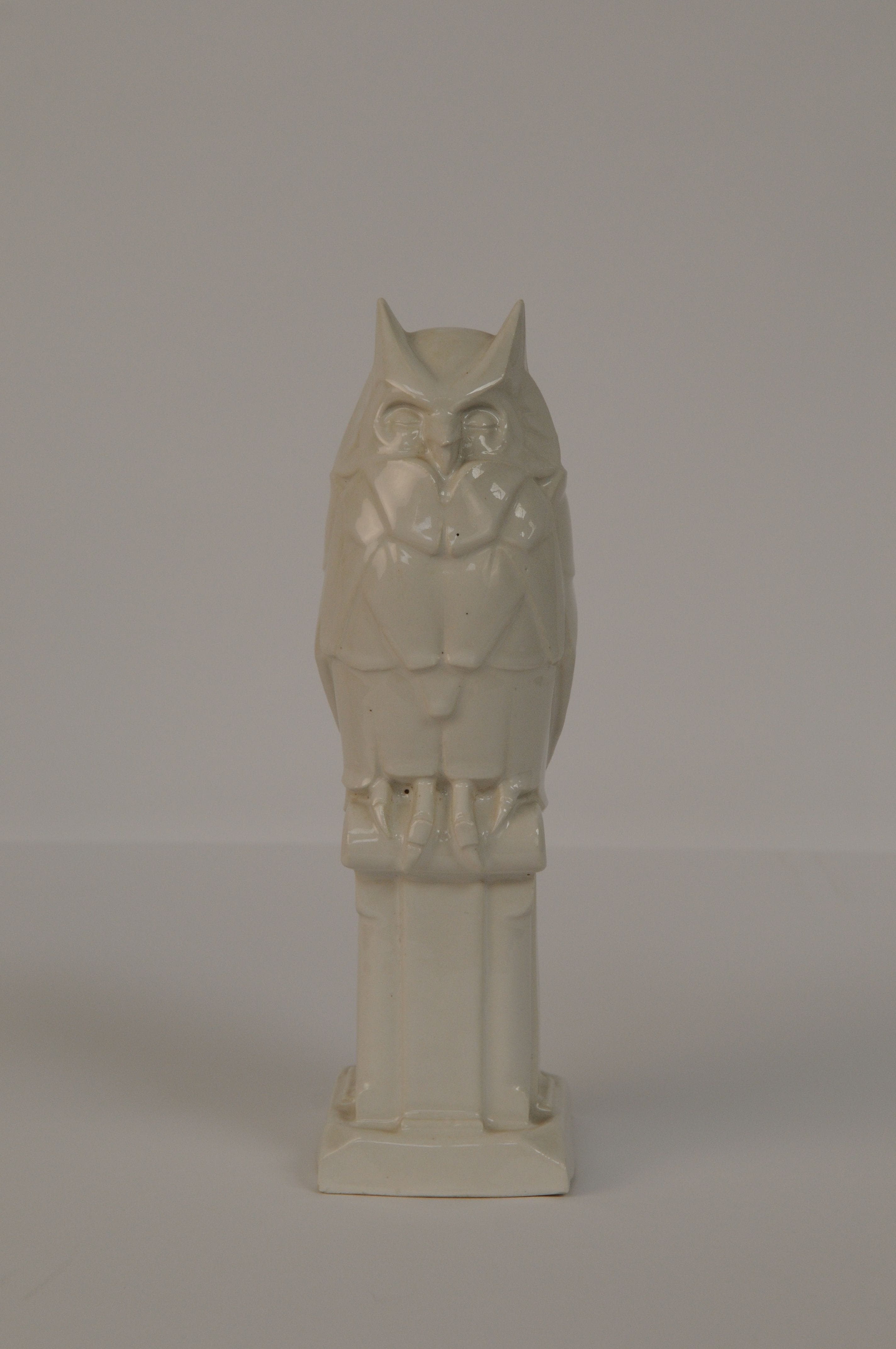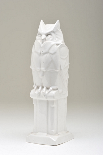 Uil, wit geglazuurd aardewerk - 1911/1913, 25 x 8 x 10 cm, gemerkt binnenin met penseel: Altorf + Lannooy en driehoek met daarin 12X en letters B, A en L op de hoekpunten