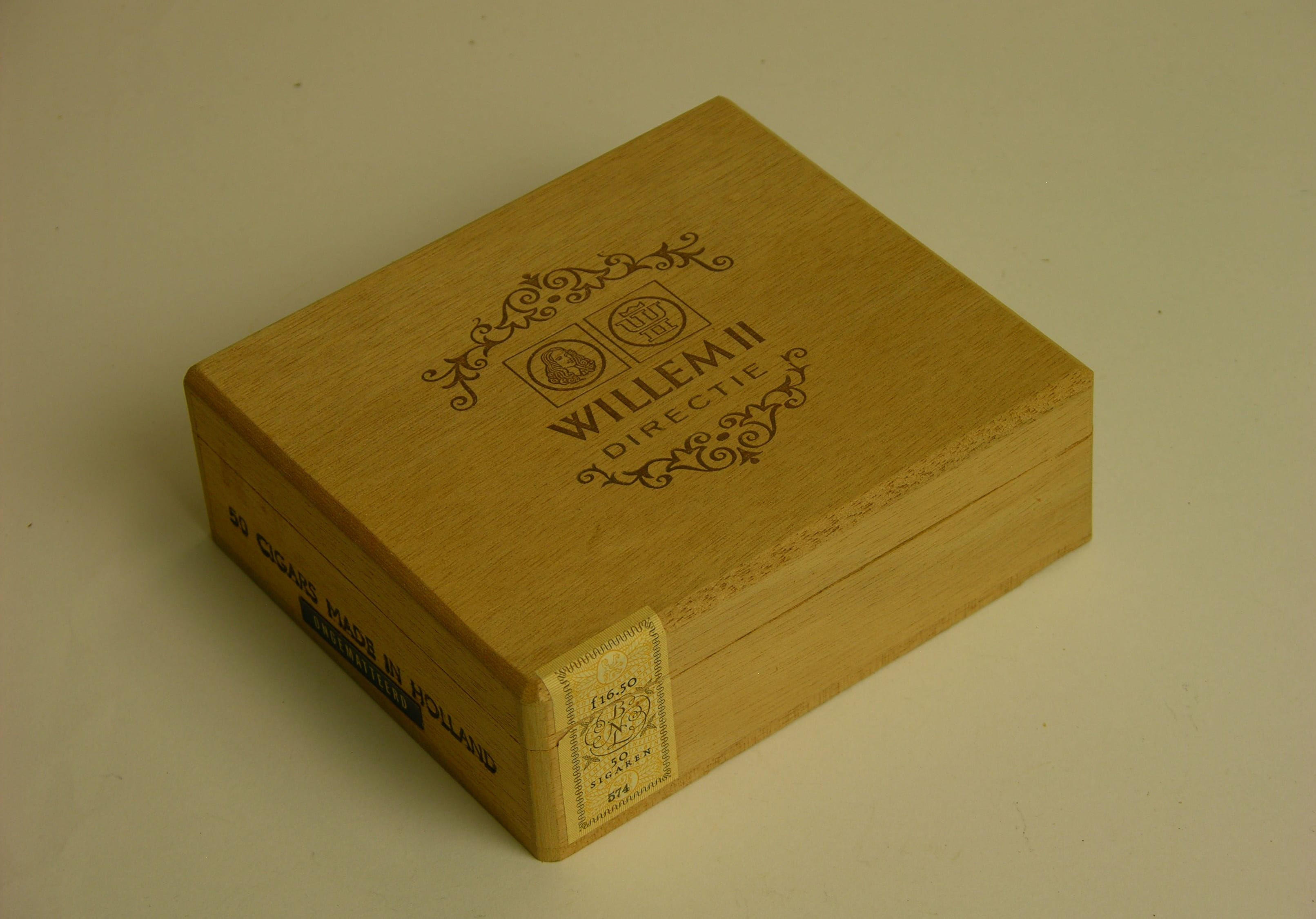 Sigarenkistje 'Willem II Directie' - 4e kwart van de 20e eeuw, materiaal: hout, afmetingen: 4,2 x 12,8 x 11,3 cm, sigarenkistje voor 50 'Willem II Directie' sigaren, ongematteerd