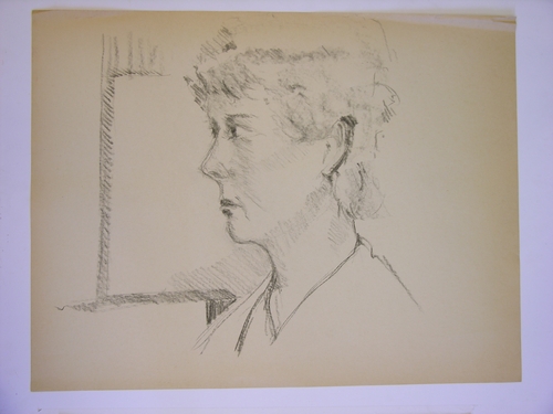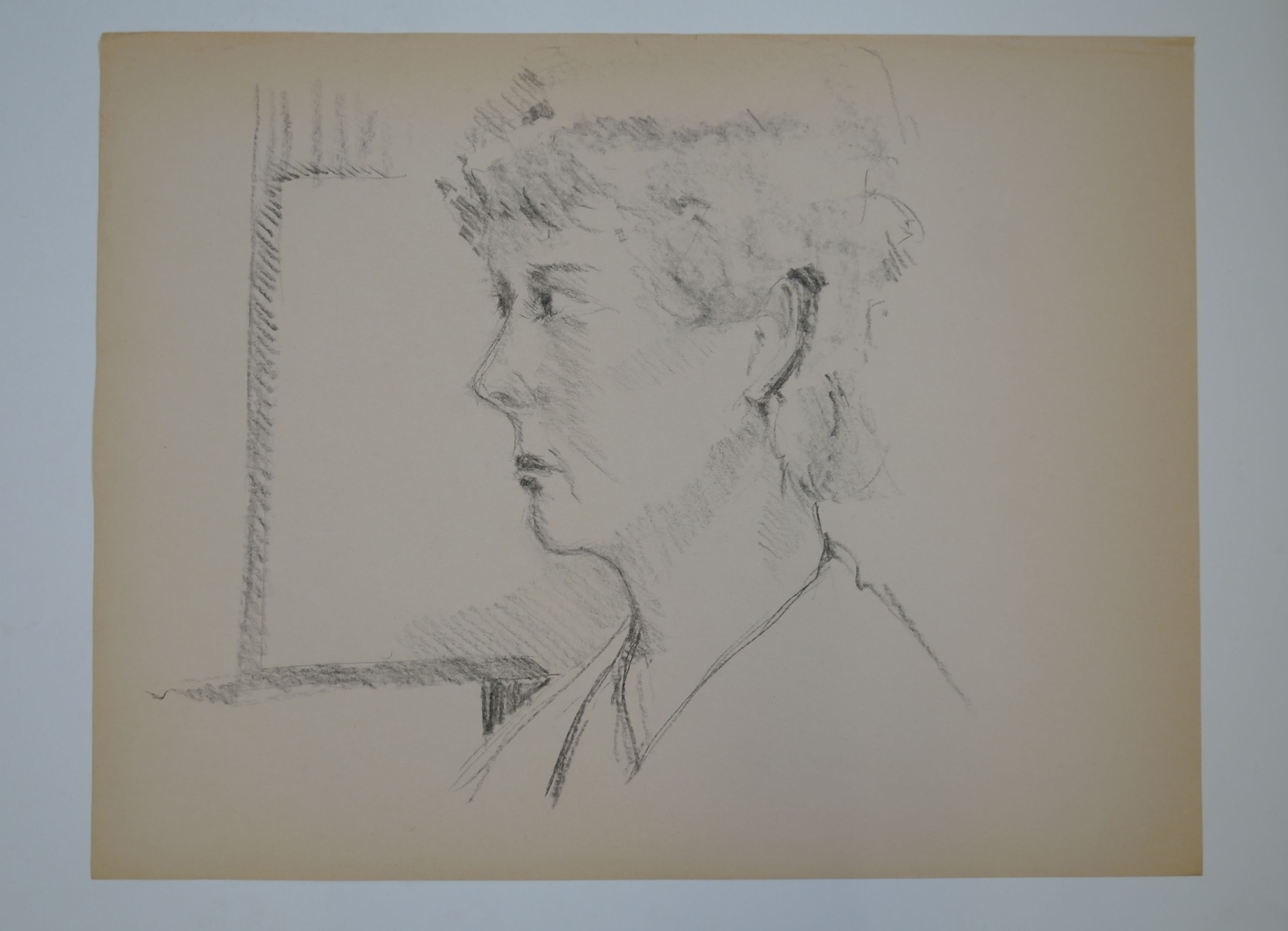 Vrouwenportret – z.j., zwart contékrijt/papier, 50 x 65 cm
