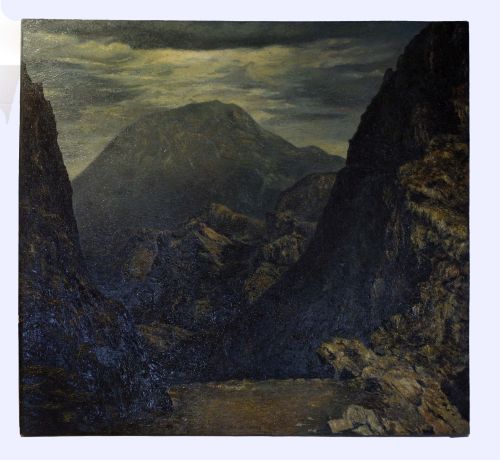 Rotslandschap – omstreeks 1948, olieverf/paneel, 115 x 134 cm, gesigneerd m.o.: H. JAN SCHOUTEN