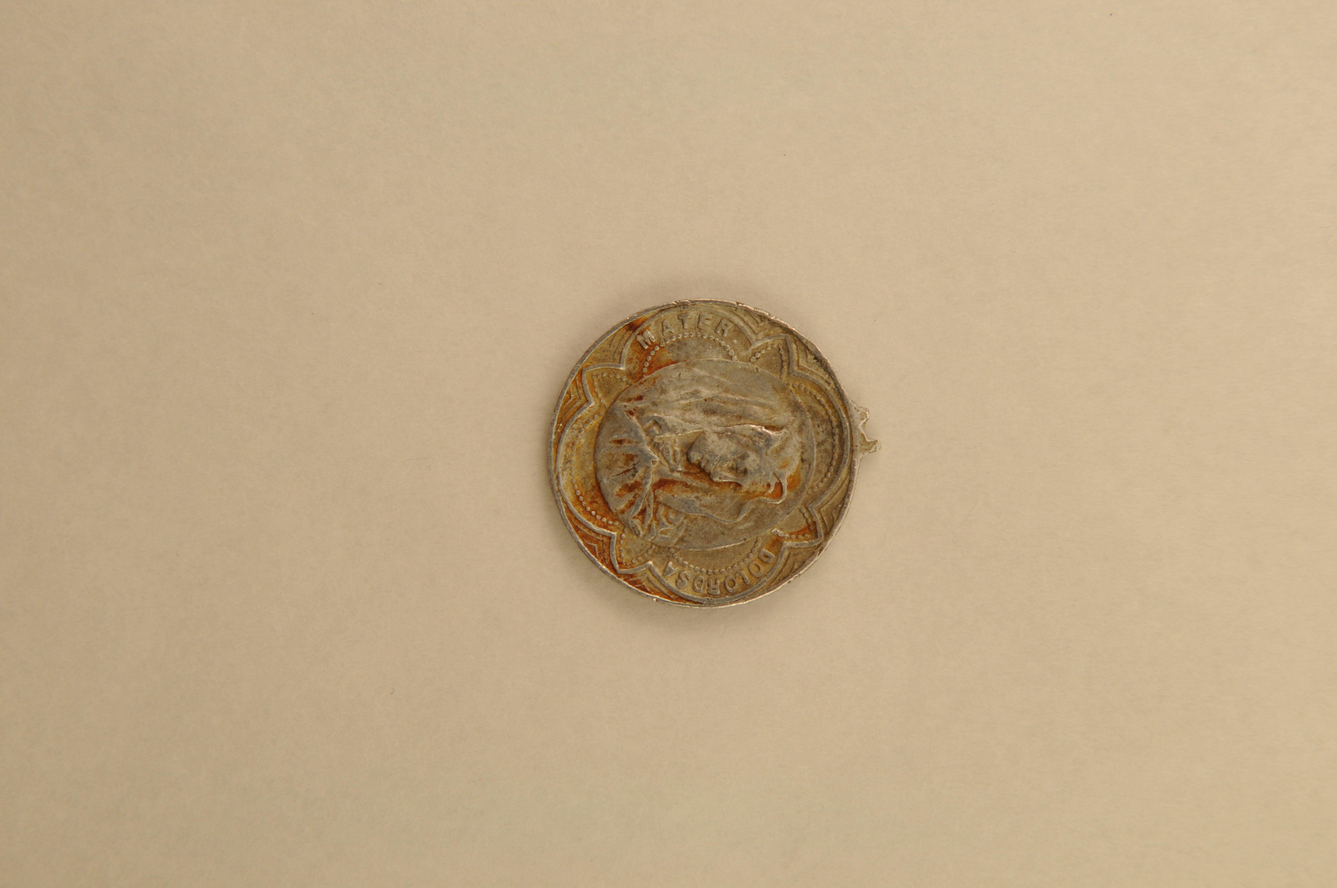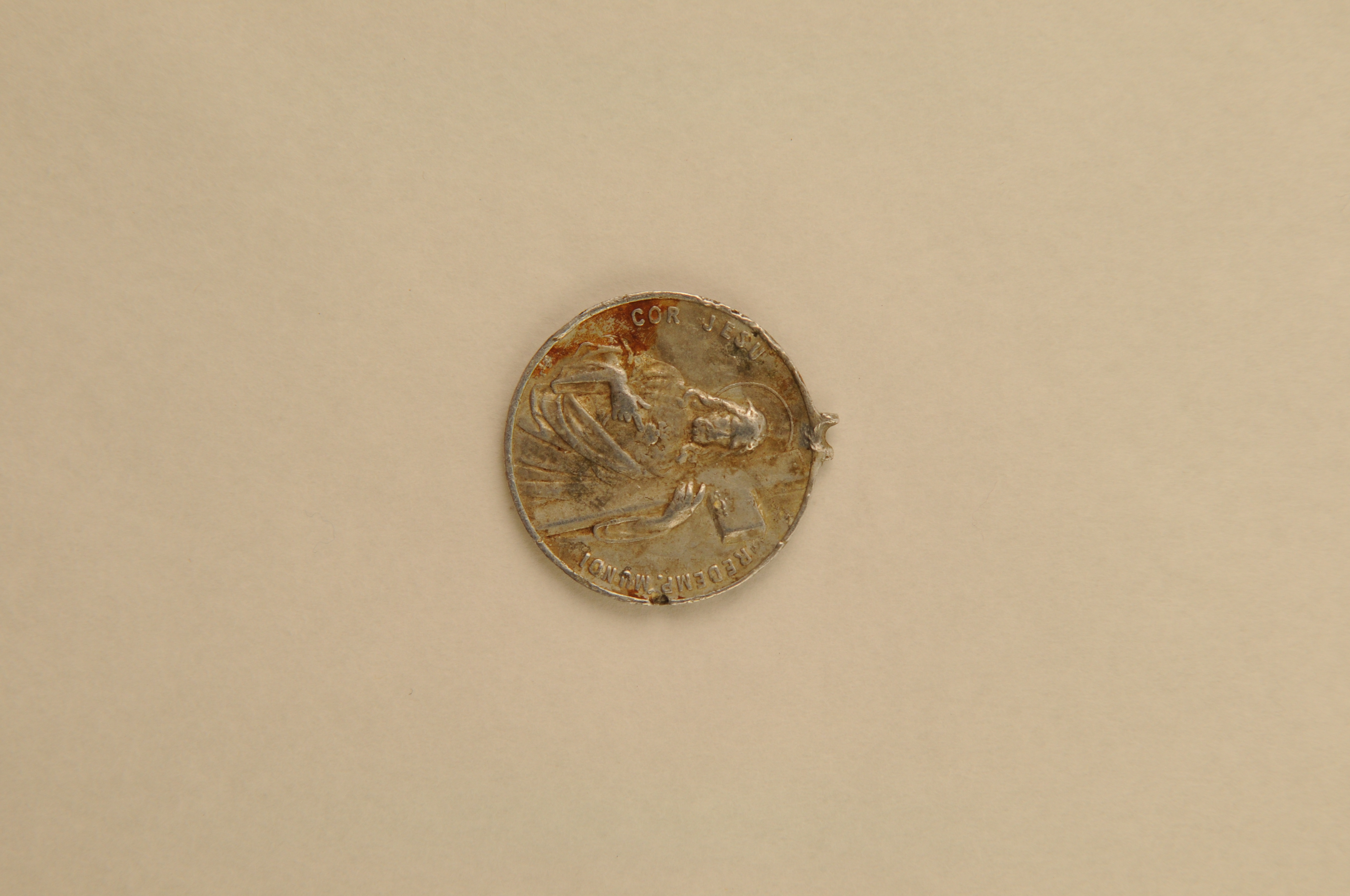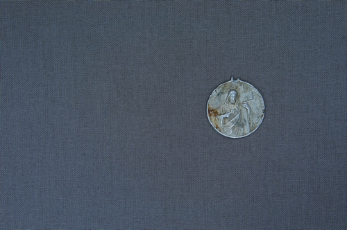 Ronde medaille met een reliëfafbeelding van de Moeder van Smarten met de tekst: 'Mater Dolorosa'. Op verso: een reliëfafbeelding van een kruisdragende Christus, wijzend op zijn Hart met de tekst: 'Cor Jesu redemp. mundi'.