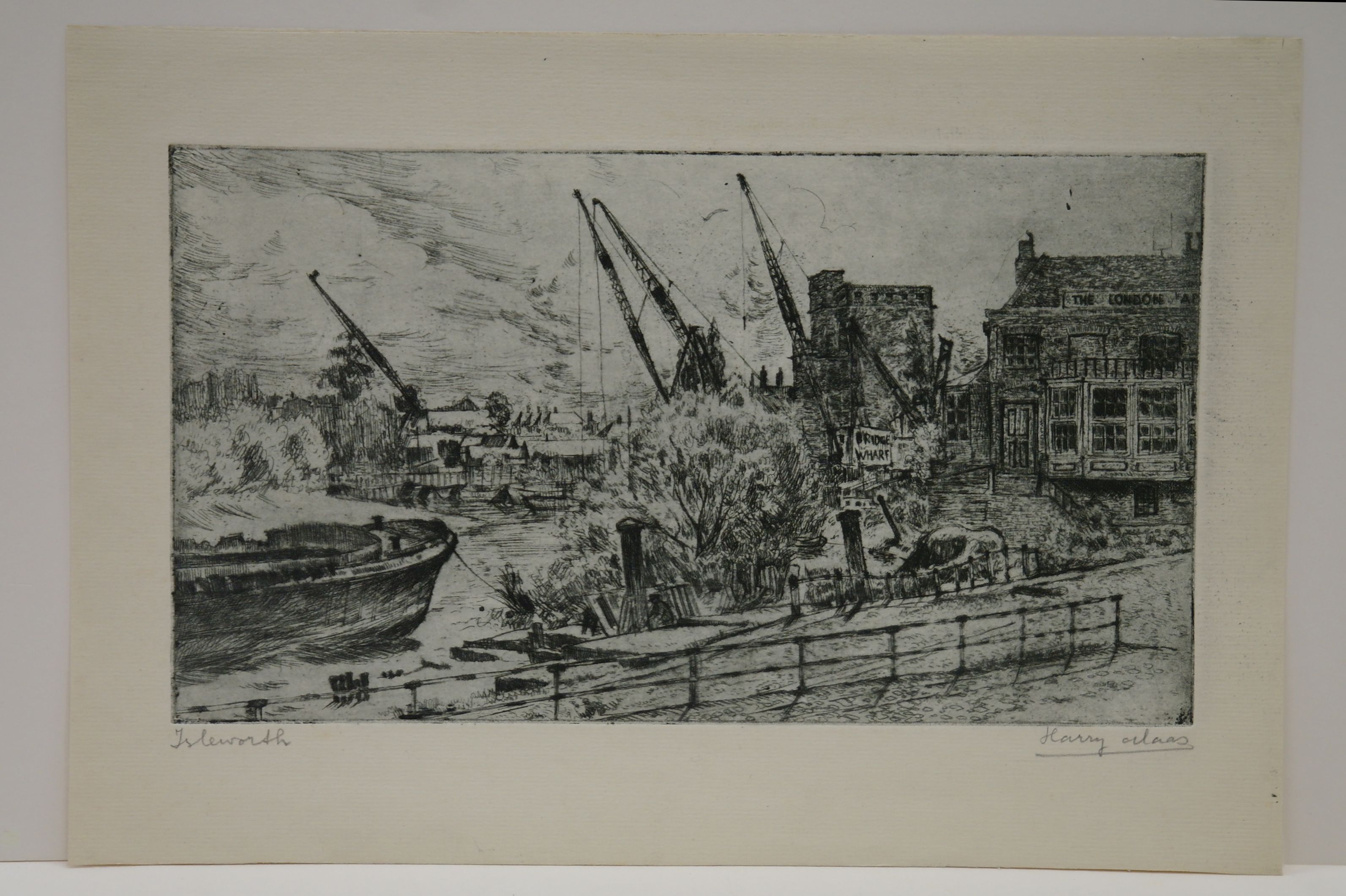 Isleworth - z.j., ets/papier, 24.2x 35.3cm, gesigneerd onder plaat in potlood r.o.: Harry Maas, gelocaliseerd onder plaat in potlood l.o.: Isleworth, HN-nr M1-124 Isleworth - z.j., ets/papier, 168 x 299 mm, gesigneerd onder plaat in potlood r.o.: Harry Maas, gelocaliseerd onder plaat in potlood l.o.: Isleworth, HN-nr M1-124