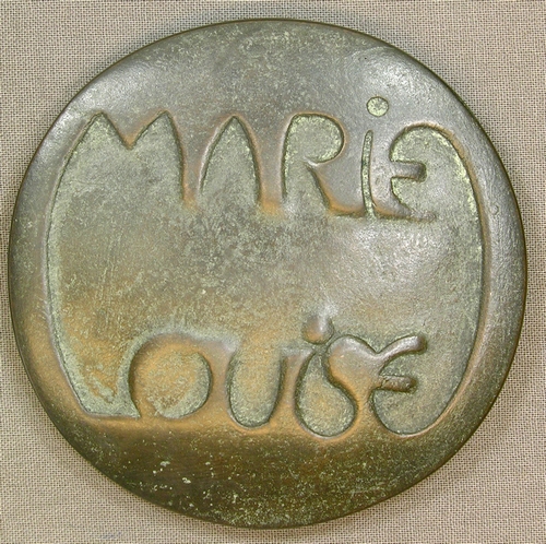 Portretpenning Marie Louise Dortmans-van den Broek (Mierlohout 19-03-1961) - z.j., brons, diam. 85 mm, dikte 14 mm, v.z.: portret van Marie Louise Dortmans-van den Broek en profil n.r., gemonogrammeerd: ´JR´ (inéén) k.z.: opschrift ´Marie Louise´ Volgens mondelinge mededeling van de kunstenaar is het afgebeelde model: Marie-Louise Dortmans-van den Broek * 19 maart 1961 Mierlohout´, deze penning ...