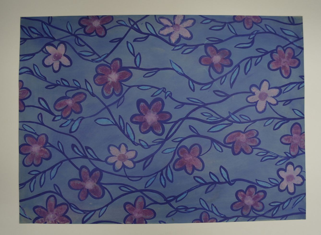 Textiel-ontwerp Pergola E 12385, gouache en pastelkrijt/papier, 695 x 495 mm