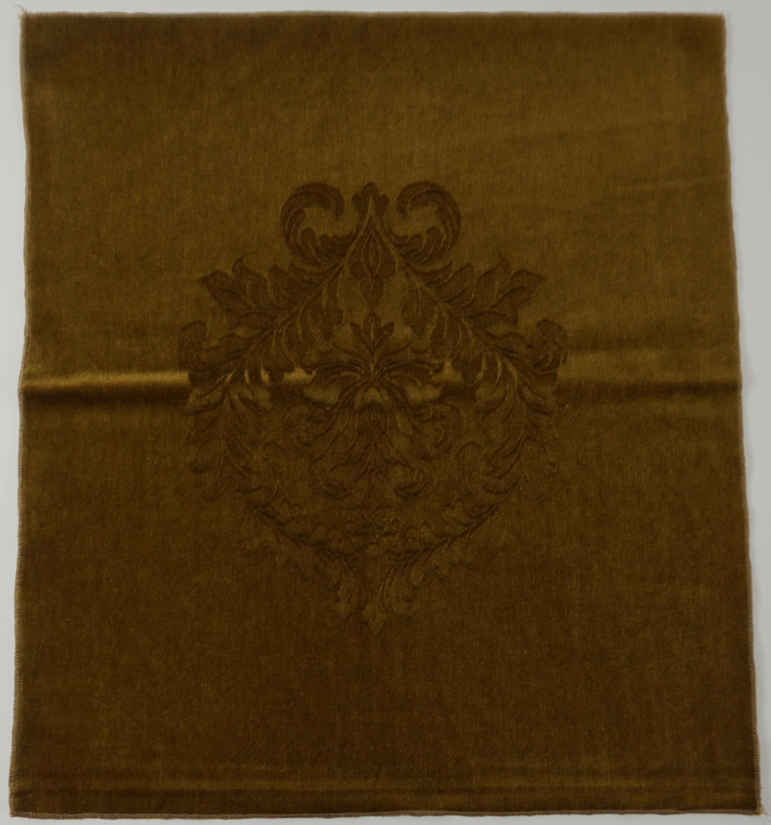 Stofstaal, materiaal: velours, kleur: olijfgroen, lengte 65 cm, breedte 58 cm. gedessineerd, één patroon