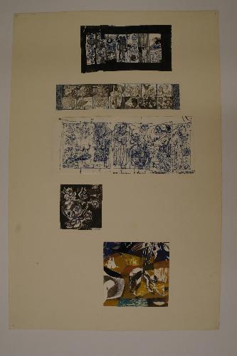 Blad met vijf ontwerpen voor wandschildering, kantine NV Eindhovensche Drukkerij