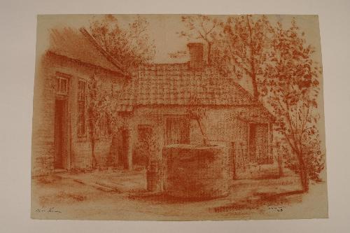 Op de Keersop - 1941, tekening in rood krijt/papier, 305 x 436 mm, gelocaliseerd l.o.: Op de Keersop, gesigneerd en gedateerd r.o.: KVermeeren SL '41