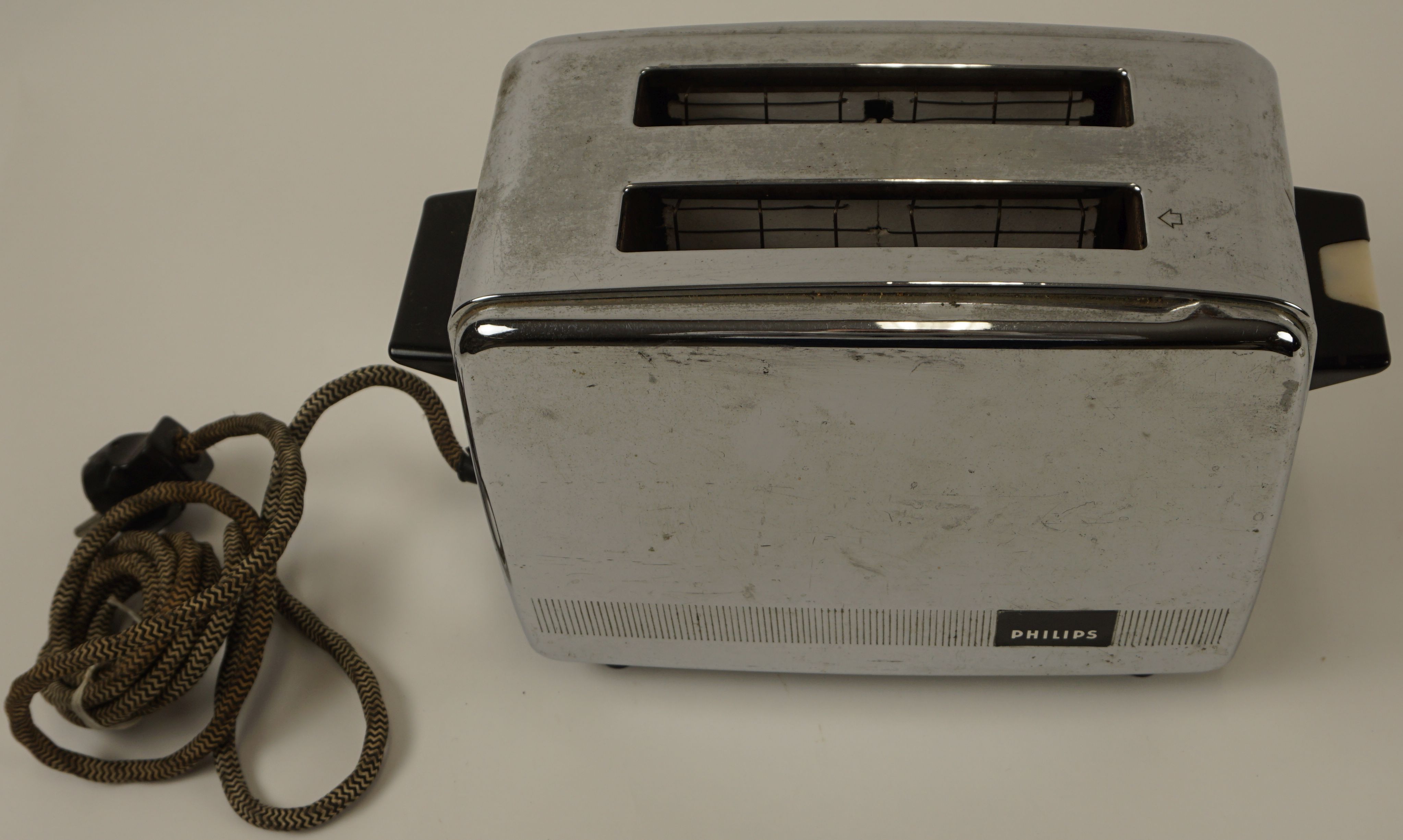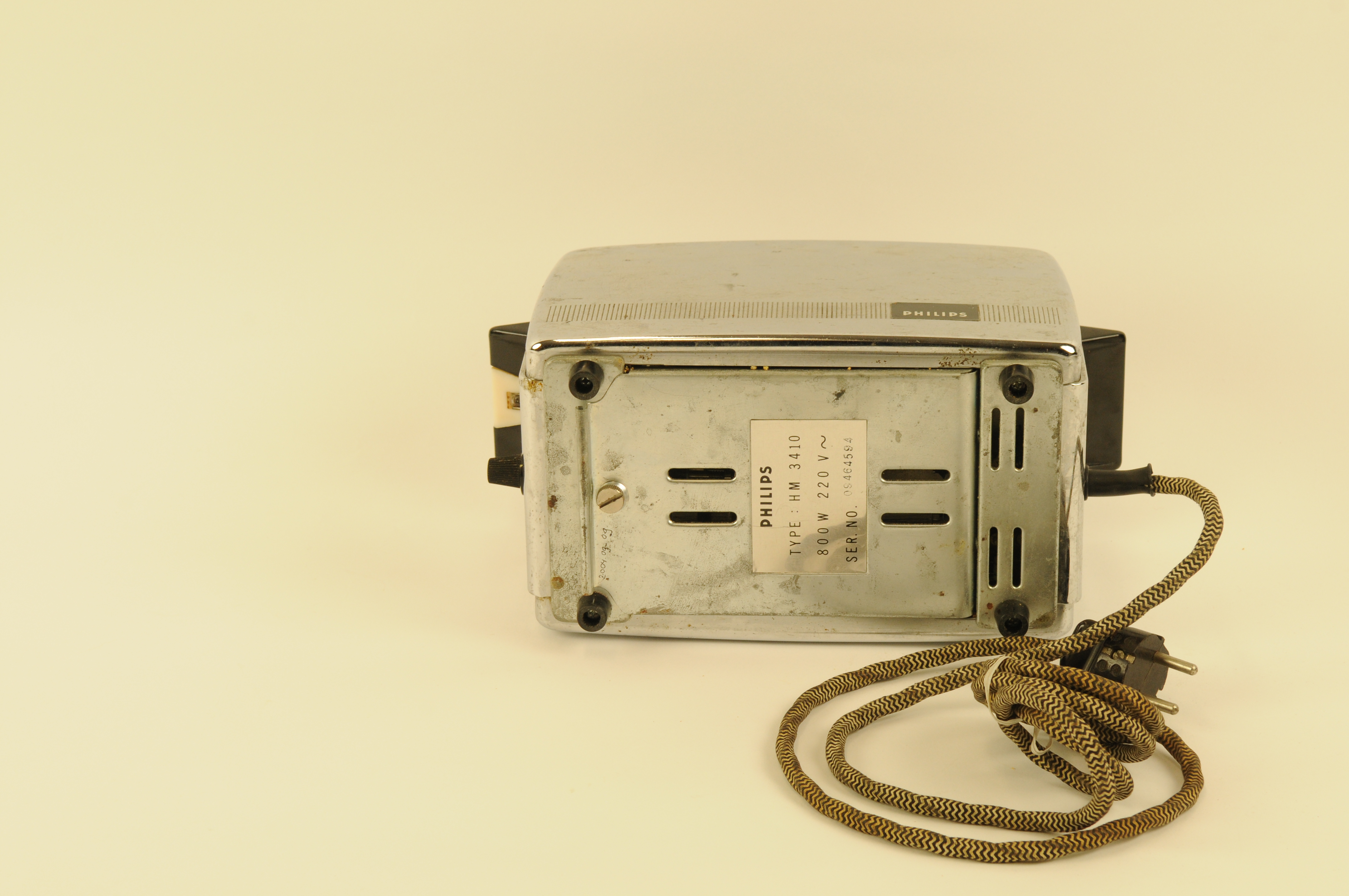 Verchroomd metalen broodrooster van het merk Philips Type HM 3410 800 W 220 V, ser. no. 09464594