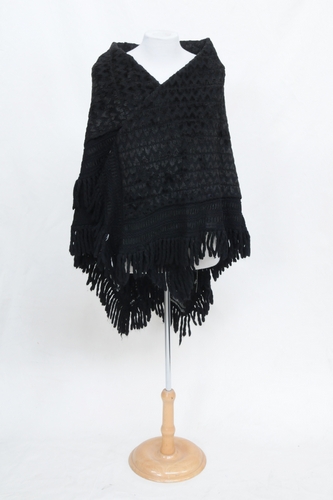 Zwarte gebreide wollen omslagdoek (“Nussik”)