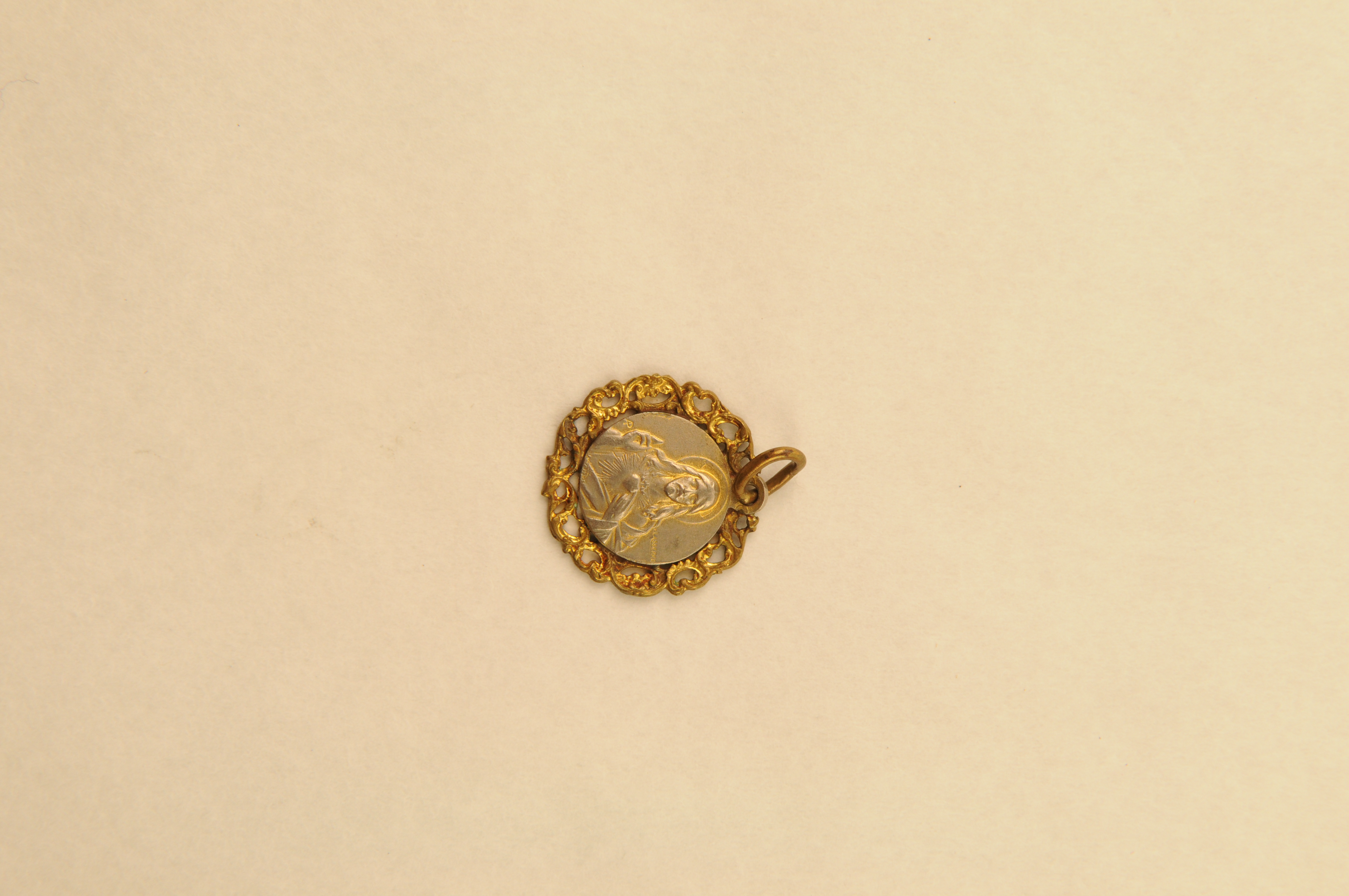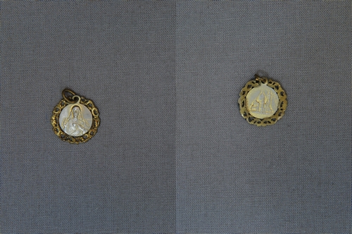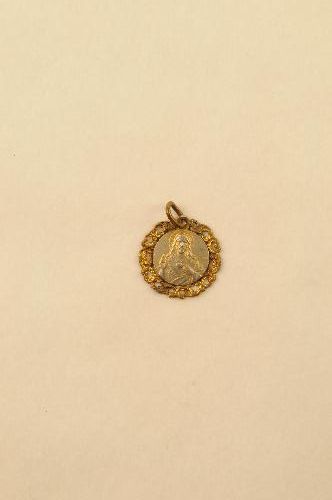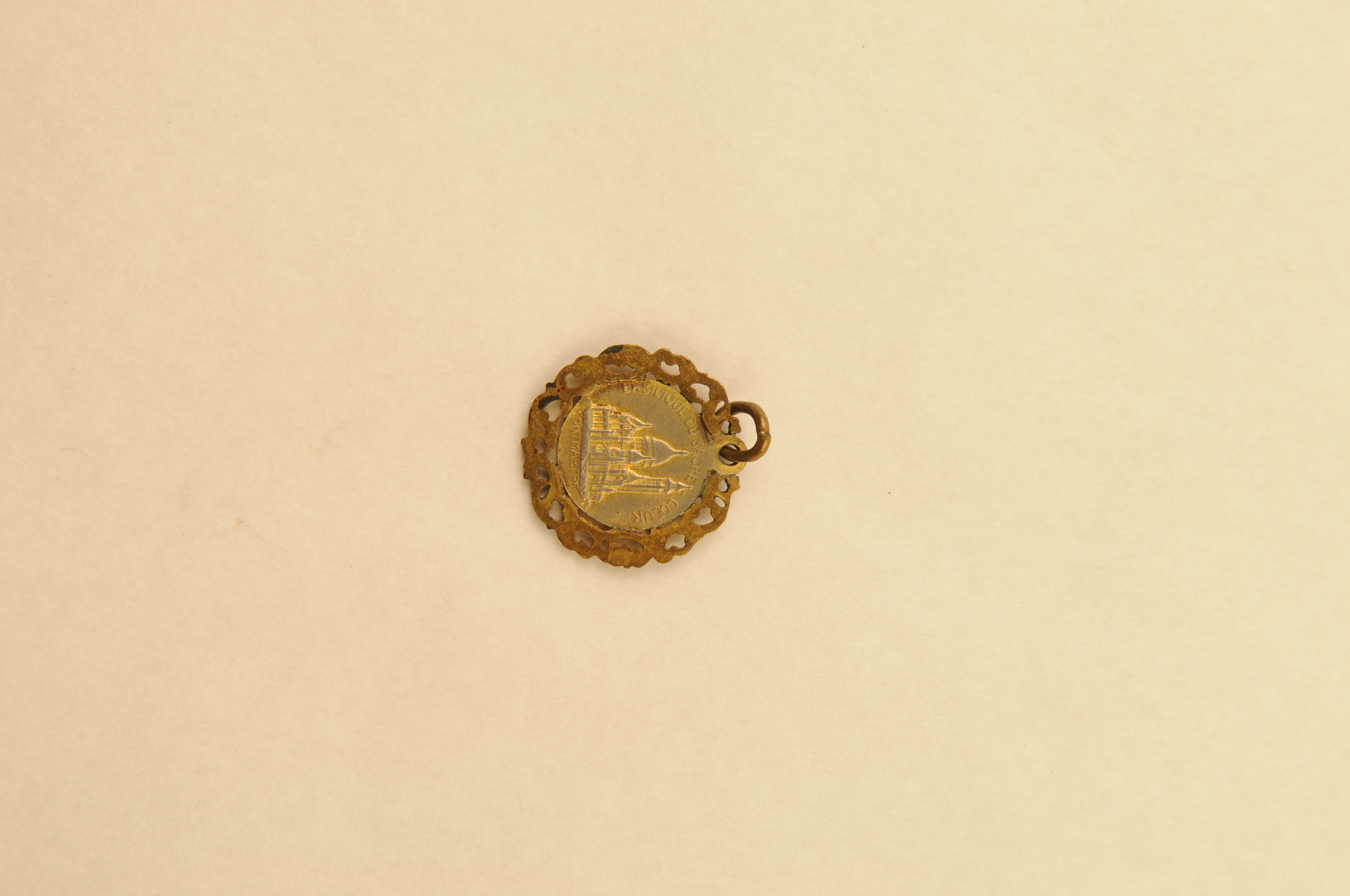 Religieuze medaille 'Basilique Sacré Coeur Montmartre' - 1e helft van de 20e eeuw, materiaal: verzilverd messing, afmetingen: 2 x 1,8 x 0,2 cm, ronde medaille met op de vz.: reliëfafbeelding van het Heilig Hart van Christus en heel klein het opschrift 'LASSERRE' (ontwerper of vervaardiger ?) en op de kz.: reliëfafbeelding van de Sacré Coeur ...