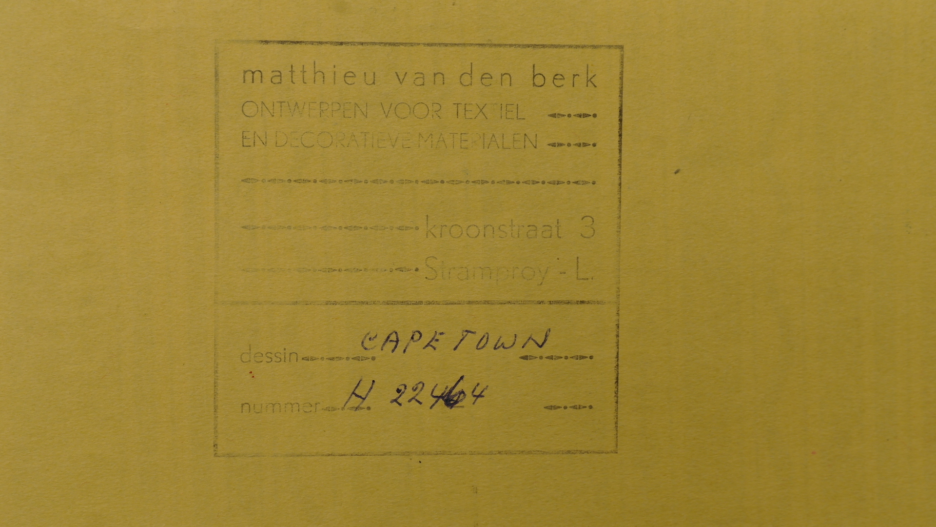 Textiel-ontwerp Capetown H 22464, gouache, goudinkt en potlood/papier, 223 x 327 mm
