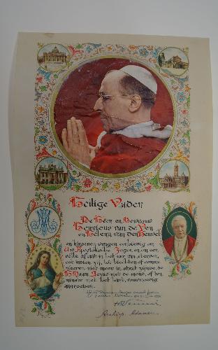 Heilige Vader, de Heer en Mevrouw Henricus van de Ven en Helena van den Heuvel en kinderen vragen eerbiedig om Uw Apostolische Zegen en om een volle aflaat in het uur van sterven, ook mogen zij, tot biechten of communiceren niet meer in staat zijnde, de H. Naam Jezus met de mond, of ten minste ...