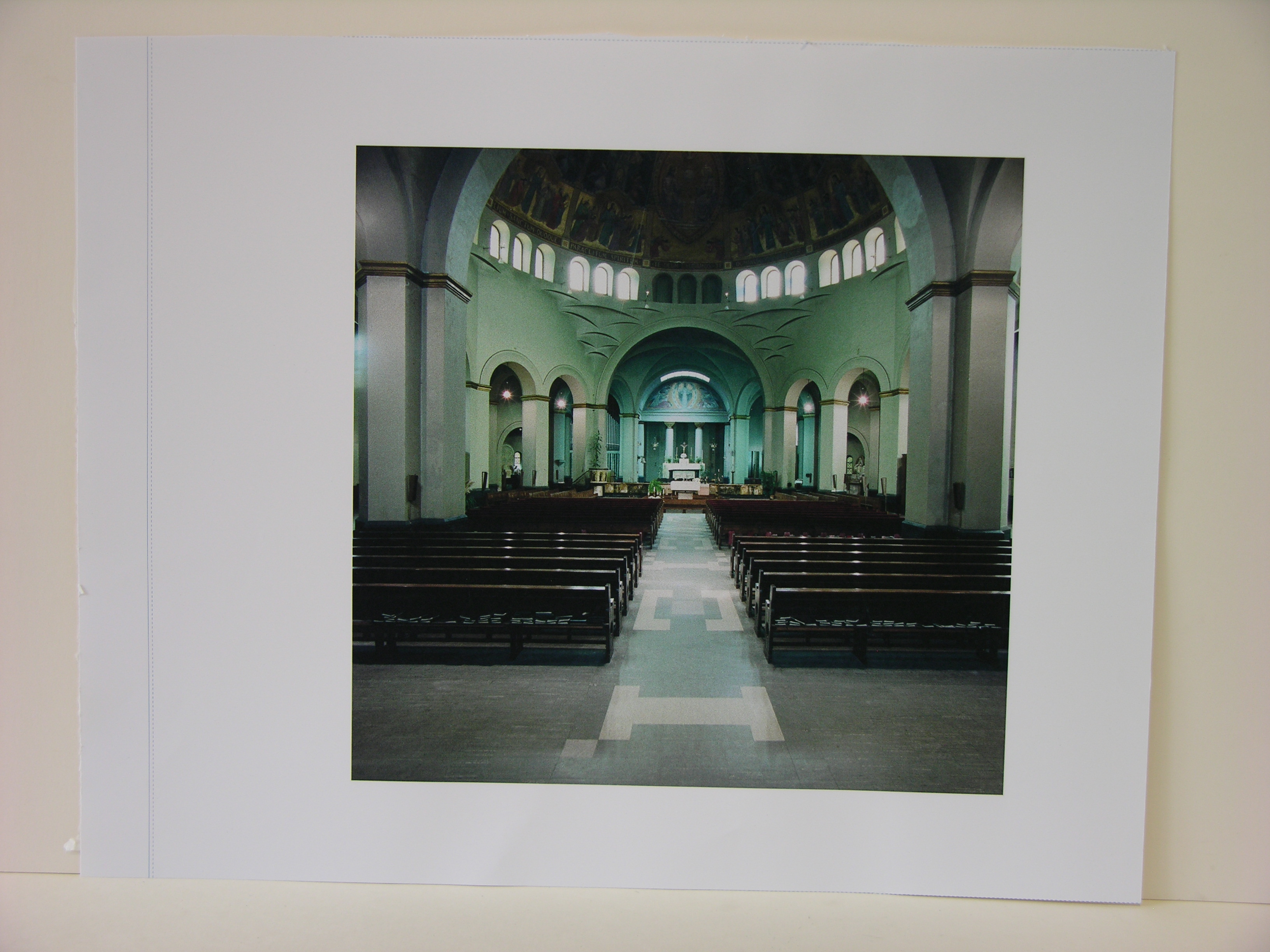 De St. Antoniuskerk in het Villapark in Tongelre, interieur, kleurenprint/papier, 300 x 290 mm., foto: TUE/R. van Wendel de Joode Fotoprints bij expositie 'Geloven in Eindhoven', n.a.v. Open Monumentendag 2005, in passe-partout, telkens twee prints in 1 passe-partout
