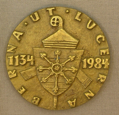Norbertuspenning, vz. Portret Norbertus met de stad Magdeburg, kz wapen van Norbertijnen met randschr: BERNA UT LUCERNA 1134 – 1984, gietpenning, brons, 75 mm