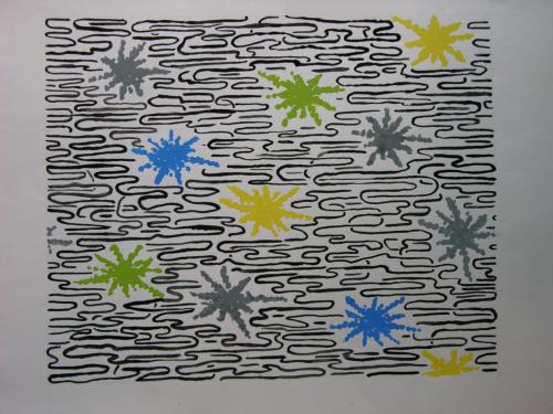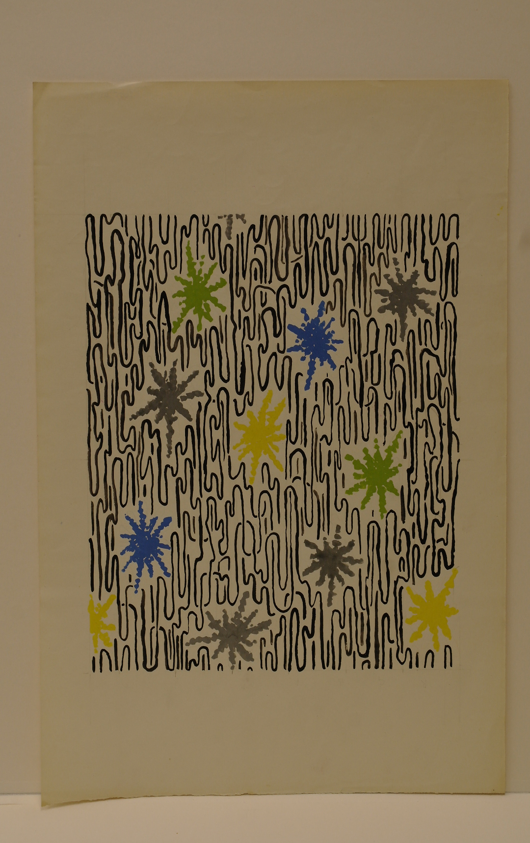 Textiel-ontwerp (naamloos), gouache, O.I. inkt en potlood/papier, 320 x 260 mm