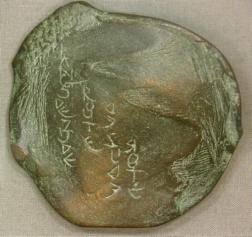 Langs de Zijderoute - z.j., brons, 90 x 83 x 20 mm, ongesigneerd, geannoteerd kz.: 'LANGS DE ZIJDE ROUTE' en éénmaal in spiegelschrift ('pseudo-Japans')