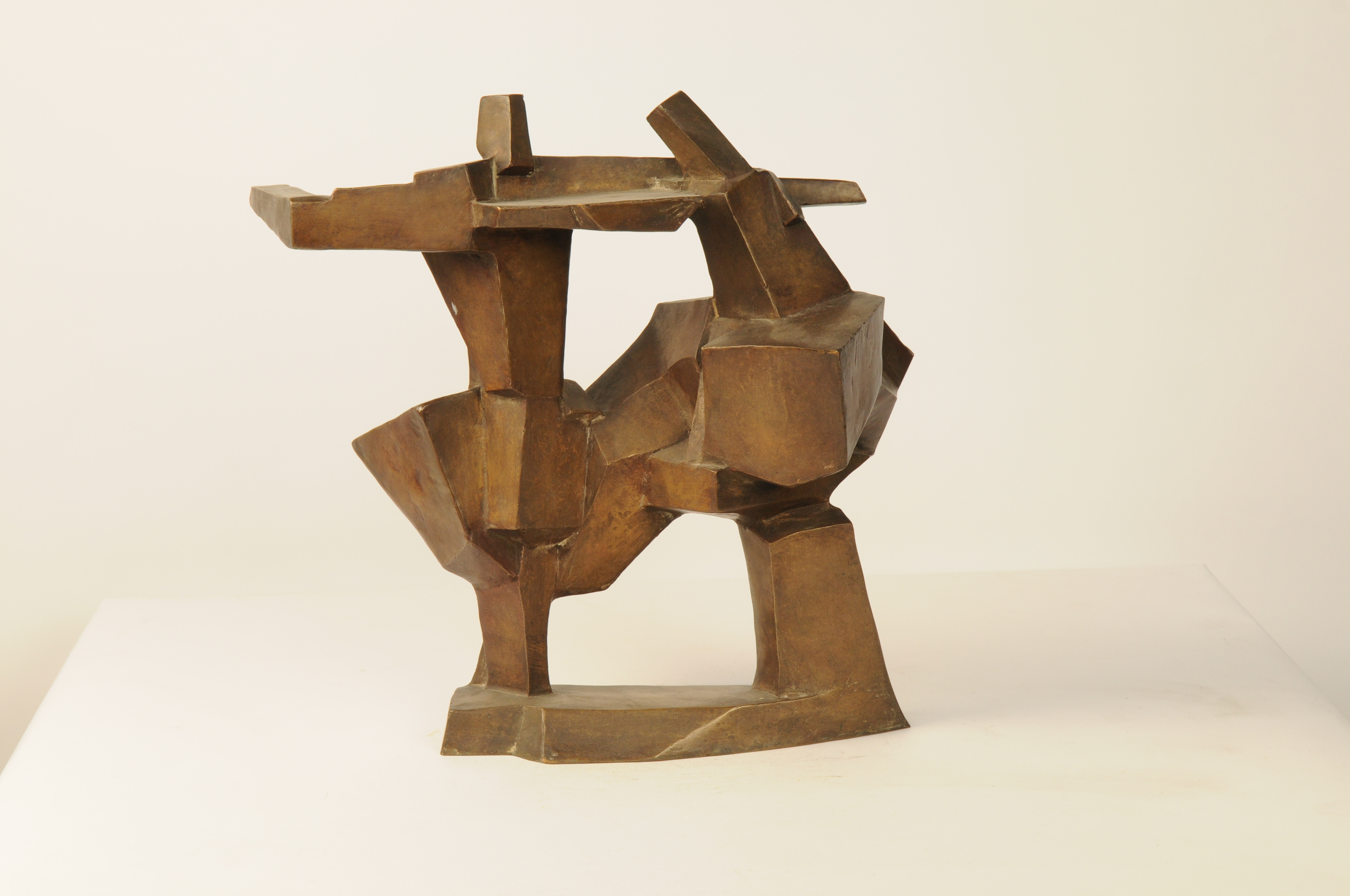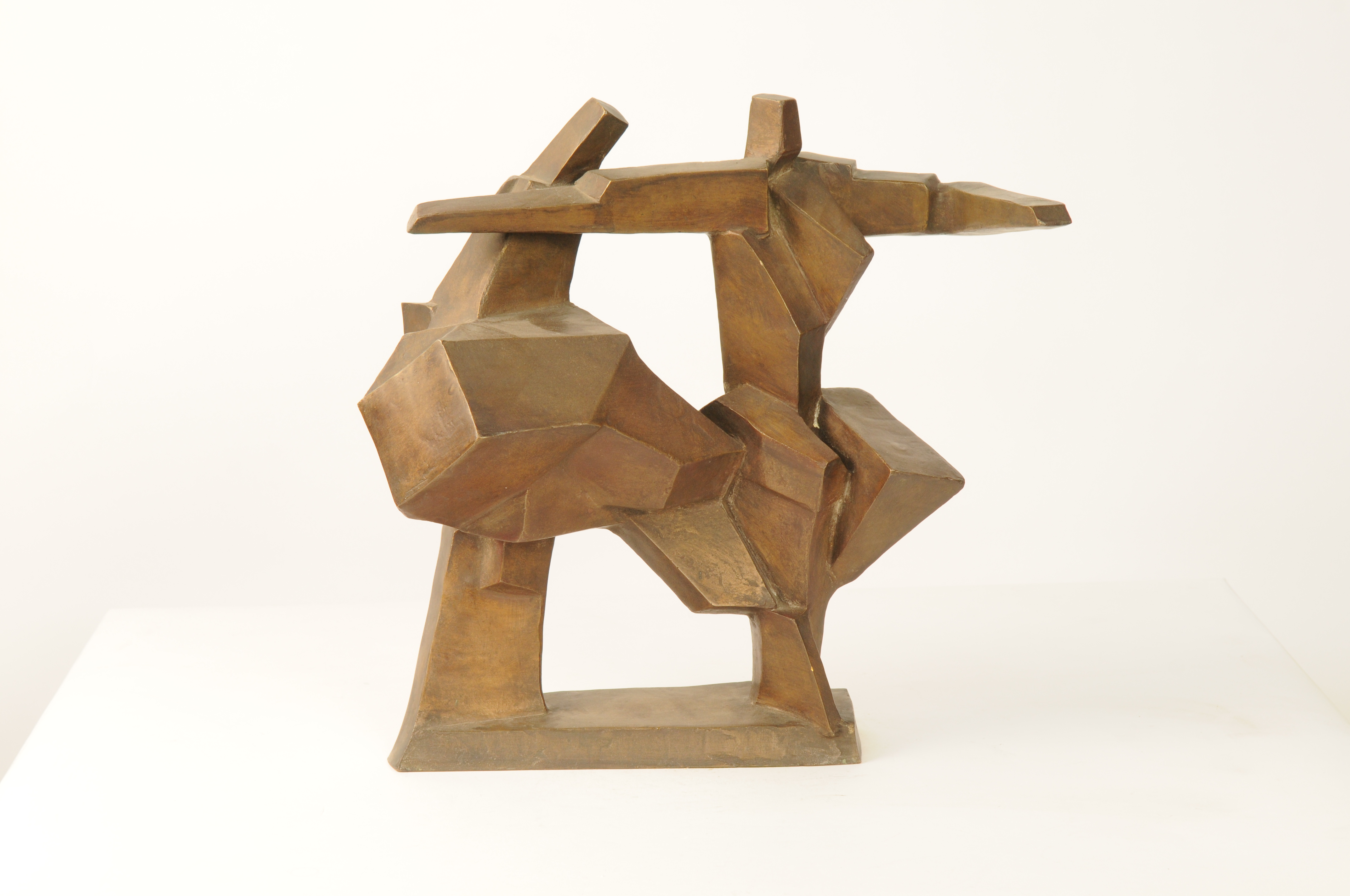 Danseressen - 1979, twee zittende figuren, kubistisch weergegeven, brons, 36,5 x 41 x 21,5 cm, gesigneerd: Steyn, gegoten: Rijnlandse Kunstgieterij te Leiden Danseressen - 1979, twee figuren, kubistisch weergegeven, brons, 36,5 x 41 x 21,5 cm, gesigneerd: Steyn, gegoten: Rijnlandse Kunstgieterij te Leiden Dit werk is tot stand gekomen onder invloed van kubistisch werkende Fritz Wotruba