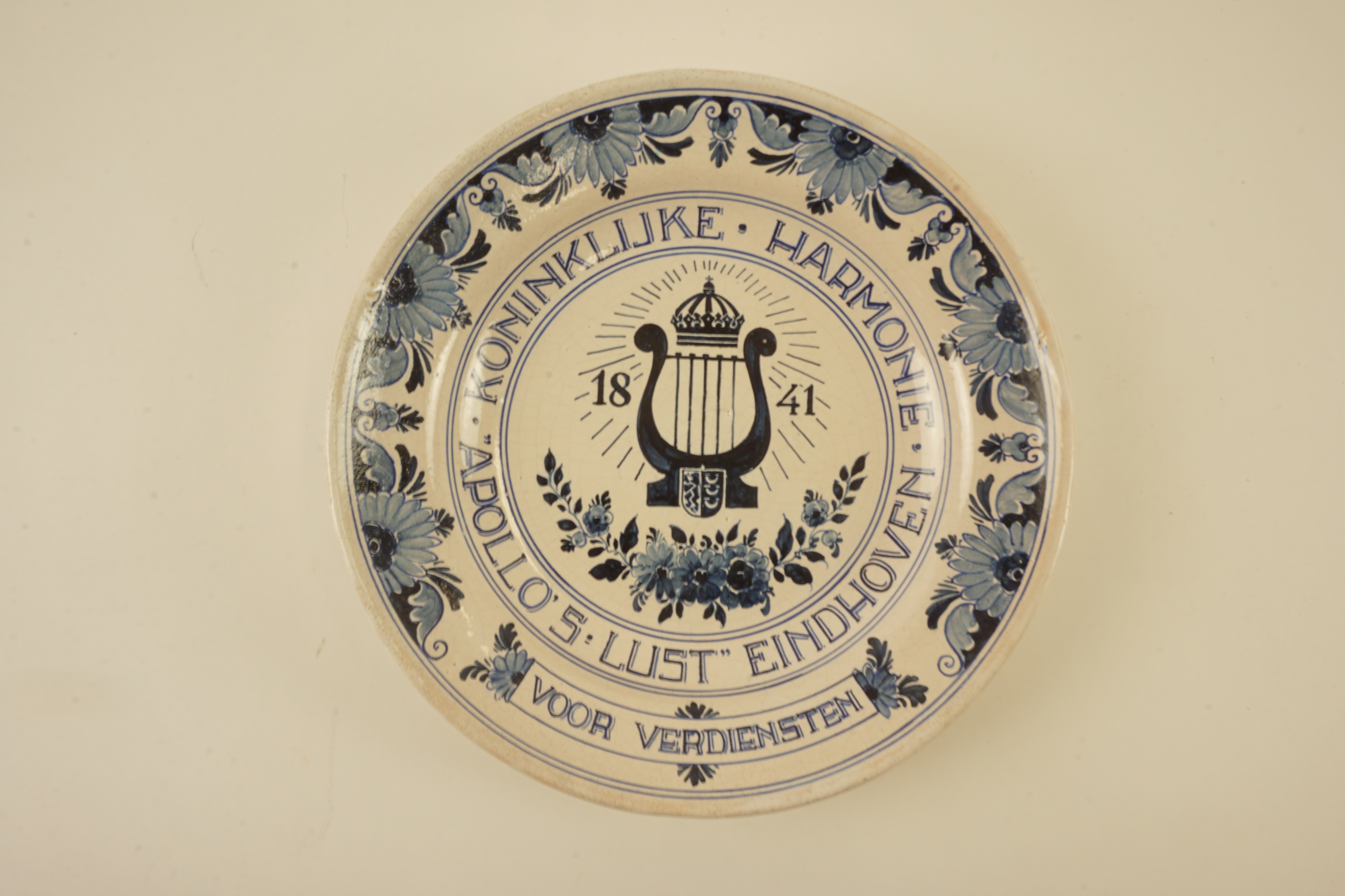 Wandbord met opschrift: Koninklijke Harmonie 'Apollo's Lust' Eindhoven voor verdiensten 1841